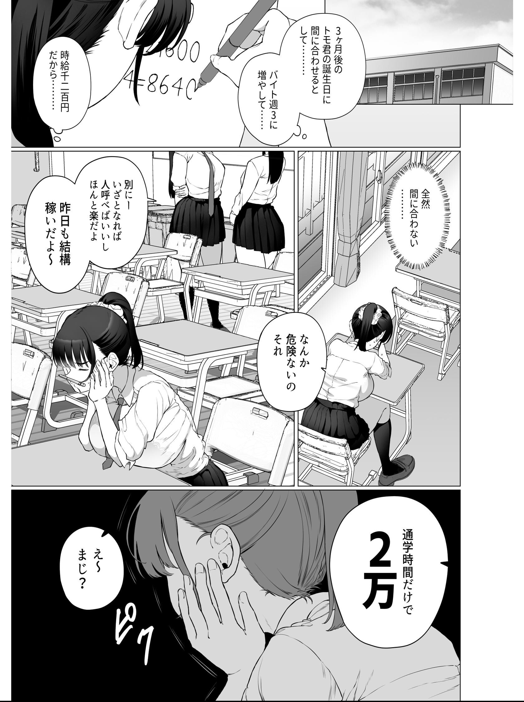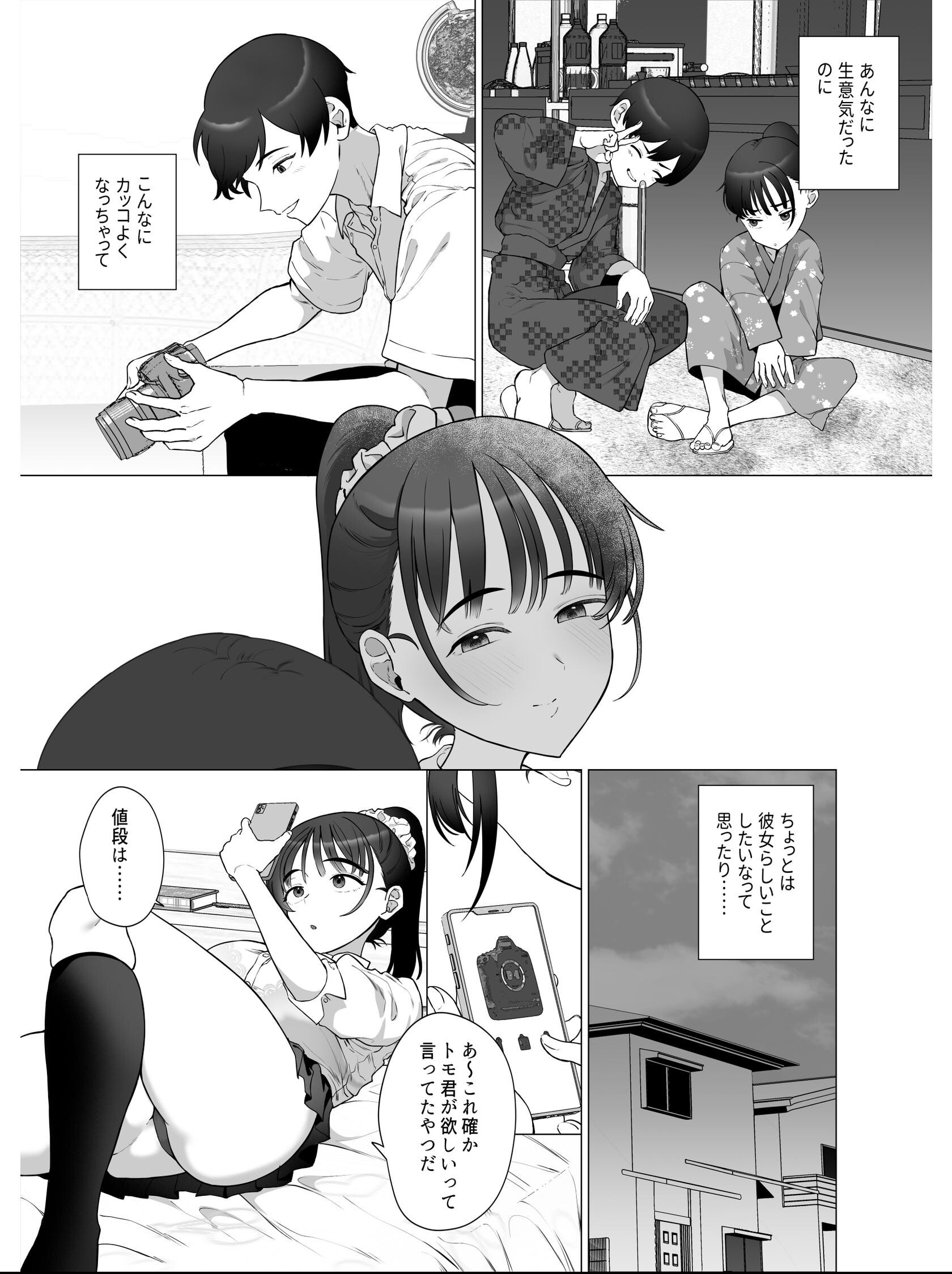 幼馴染の彼氏に高級カメラを贈るため、翠結(みゆ)は‘逆痴●P活’でお金を稼ぐことにした。 トモ君のためなら何でもできる―― 最初は震えていたのに、今ではスカートを捲り上げて自ら濡れた割れ目を晒しあげ、自ら愛撫を求めてしまう。 知らない男の太い指がショーツをずらし、膣穴を抉られるたび、罪悪感と背徳感で心がぐちゃぐちゃに捻じ曲がる… 「触るだけ」「キスはしない」「絶対に本番はダメ」 ――自分に言い聞かせたルールは、快楽に身を委ねるたび崩れ落ちていく。 電車内で初めて他人棒をねじ込まれ、多目的トイレで子宮口をゴリゴリ擦られながら「中に出して(はーと)」と自分から叫んでしまう。 「トモ君、ごめんなさい…」 純愛はまだ胸にある。 でも身体はもう、他人のザーメンなしでは満足できない。 ■前川 翠結(みゆ) 身長 : 165cm スリーサイズ : 110-61-94(Lカップ) 幼馴染の彼氏がいるが、手を繋いだことくらいしかない。性知識に乏しい。 ページ数…本文79p 制作者…業務用自我 X…@dasuna_ziga PixivユーザーID…104044343