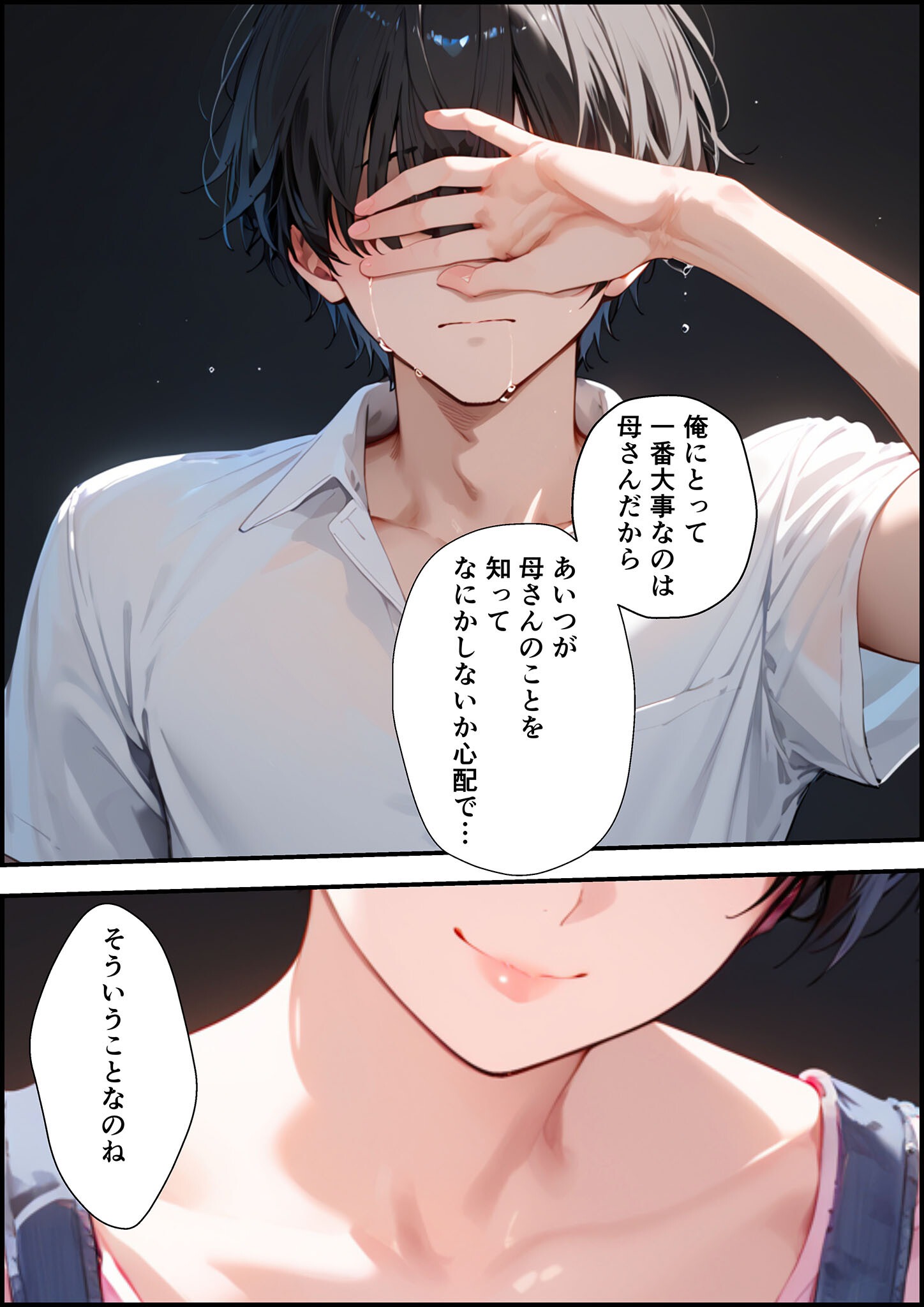 人気シリーズ2タイトルを収録! 【ストーリー】 シングルマザーである月城夏子は息子から虐められているという話をきいて、いじめっ子に立ち向かうようにアドバイスをするが、息子はやりすぎていじめっ子を病院送りにしてしまう。 その責任を取るために、いじめっ子の体が治るまで、いじめっ子の家政婦をすることになるが、いじめっ子は、夏子の体が目的で…。 【登場人物】 ・主人公 気が弱いが優しい性格をしている。気が弱いのにつけこまれて虐められていたが、夏子にアドバイスを受け、いじめっ子に立ち向かうことを決める。 ・月城夏子 主人公の母親。若い頃に夫をなくして女手ひとつで主人公を育てている。性的に潔白なことがあり、主人公がエロ本を読んだりするのを禁止している。 ・いじめっ子 人の好きなものを壊すのが好きな異常者。主人公と母親を最高の形で壊すのを楽しみにしている。 【注意事項】 ※本作品に登場する人物は全て人工知能(AI)によって生成されたイラストであり、実在しません。 ※本作品はAI生成画像のため、手足など細かな部分が乱れている場合があります。 ※本作品に登場する人物は全員20歳以上です。 ※本作品はAIによる生成画像を使用して制作しております。 ※犯罪、その他違法行為を美化または助長する意図はございません。 ■収録作品 女手ひとつでボクを育ててくれた自慢の母がボクを守るためにいじめっ子の女になる話 女手ひとつでボクを育ててくれた自慢の母がボクを守るためにいじめっ子の女になる話2 ※収録書籍をご確認の上、単巻、他合本シリーズとの重複購入にご注意ください。 ※本作品は、原作の本文・画像等を、権利者様から許諾を頂いております。 (C)ラビットフット/バベル太郎 女手ひとつでボクを育ててくれた自慢の母がボクを守るためにいじめっ子の女になる話