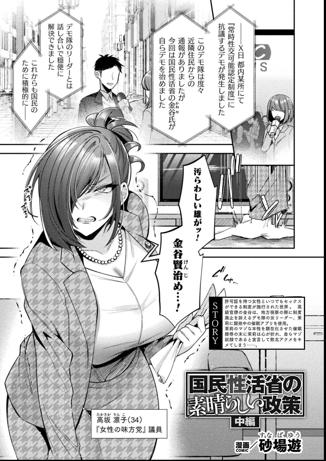 不思議H系漫画雑誌『コミックアンリアル』姉妹誌の『コミックアンリアルぷらす』がリニューアル! 今回はMC(マインドコントロール)特集として、 妖術で不良ギャルへのお仕置きH、魔法使いの少女に認識阻害魔法をかけるレズシスター、 感覚遮断&認識阻害で苗床墜ちする魔法使い、スケベ男子に催●アプリで性処理委員にされてしまう風紀委員、 ダンジョンにデリバリーされたサキュバス、露出好きの兎のお姉ちゃんとのラブHなどなど、 MCをはじめとするH作品を収録! 【収録作品】 『悪戯狐と傀儡之術 第1話』 漫画:嘘吐きF(x) 怪しい妖狐に導かれ、ワケあり女生徒たちをあやつり懲らしめる美麗フルカラー学園MCシリーズ! 気弱で目立たない男子生徒は、クラスメイトで学園でも有名な不良ギャルの雲母愛(きらら・らぶ)に掃除当番を押し付けられ、中庭の掃除中に謎の声を聴く。 封印されていた妖狐・凶月(まがつき)様から相手の頭に触れることで人の行動や感情を操る力を手に入れた主人公は、矯正委員となり不良生徒へ性的なお仕置きをして、弱っている凶月様へ力を捧げるという取引をする。 早速教室へ戻りだらけていた愛に術をかけ、普段の態度からは想像できないほどおとなしくなった愛に罪の告白をしながら自慰をするよう命じると、顔を紅潮させ胸や股間を丹念に弄りながら数々の犯罪を告白した後、命令された通りに潮を吹きながら絶頂する。 内面は最悪ながらも男を惹き付ける美貌とJK離れした肉感的なスタイルを持つ愛に女性器を拡げておねだりさせ、初挿入の気持ちよさにあっさりと膣内射精した矯正委員は、精神も変えるべく愛へ自分を大好きな恋人になるように命令して――。 『聖堂に響くわたしだけの天使』 漫画:ざんどろ シスターの歪んだ愛が、純真な魔法使いの少女を絡め取る! マナ回復のためシスターアルマを訪れた魔法使いクララ。 だがアルマの抑えきれない邪な欲望を悟られ逃げられそうになる。 焦ったアルマは、自分以外からマナを受け取れなくなるよう密かに妨害魔法をかけるのだった。 やがてマナが枯渇し、ふらふらと力尽きて戻ってきたクララ。 アルマは弱った彼女に認識改変の暗示をかけると、当然のように柔らかな胸を揉みしだき、蜜壺に指を這わせる。 クララはクリを執拗に責められるも抵抗する素振りすら見せず、びくびくと達してシーツをびしょ濡れにしてしまった。 さらにアルマは敏感になった彼女をクンニで丹念に舐め回し、逃げられないよう腰を押さえつけながら……。 『晴れのち雨 ところにより催●触手と感覚遮断』 漫画:すじいか 魔法使いが感覚遮断&催●で苗床墜ち! 魔女ルクレティアは雨宿りしていた洞窟を探検することに。 貴重な鉱石を発見し興奮を隠せないルクレティアだが、 彼女は壁面の無数の目から催●をかけられてしまっており 鉱石が偽物だということも、服が溶け秘部を晒していることも その尋常ならざる光景にも気がつかず 胸から下を感覚遮断効果のある肉壁に飲まれてしまう。 そんなことも露知らず鉱石を鑑定しているルクレティアだが、 その身体はデカクリ、ニプルファック可能な乳房といった 洞窟の苗床として相応しいものへ、激しい快楽を伴いながら作り変えられてゆき……。 『国民性活省の素晴らしい政策 中編』 漫画:砂場遊 フリーセックス制度に反対するヒロインを催●アプリで肉便器に仕立て上げる連載中編! とある証書を持つ女性といかなる時でも性交できる制度が施行され、 『国民性活省』所属官僚かつ制度の立役者である金谷は 制度反対派で彼の失脚を狙う女議員、高坂凛子からの面会の申し出を受ける。 面会の際に凛子は金谷の開発していた催●アプリによって、 まるで別人になったかのような淫乱な様子でパイズリフェラで奉仕させられてしまう。 そんなことをされているとも露知らず、 凛子は自らの下着の嗜好や身体の疼きを不審に思い金谷に詰め寄るが……? ※アンリアルコミックス『淫辱陥落〜国民性活省の素晴らしい政策〜』より特別再録 『おまかせ★あーくでりばりー 〜サーキュさんの場合〜』 漫画:あまぎみちひと むちむち淫魔とデリバリーセックス!? ダンジョンの100Fへと落ちてしまった初心者冒険者の青年は 帰還のために他の冒険者を召喚するチケットを藁にも縋る思いで使用する。 しかし、チケットしたのは帰還魔法が使える魔法使いを召喚できるものではなく サキュバスの少女サーキュが召喚され、そのことを知った青年は途方に暮れる。 そんな様子の彼に対して仕事とばかりにサーキュはフェラを開始し 巨根を前に興奮した様子で舐めしゃぶり射精させる。 彼女のフェロモンのせいか勃起が収まらない青年は、 半ばヤケになりサーキュの豊満な乳房へむしゃぶりつき……。 『お隣さんの兎姉ちゃん』 漫画:ぱてくらー 露出好き幼馴染の兎娘と性春いちゃラブH! 兎娘のお姉ちゃん・ララと同じ 人ケモ共学の学校に通うこととなった主人公・青斗は、 入学初日からケモノ娘たちが