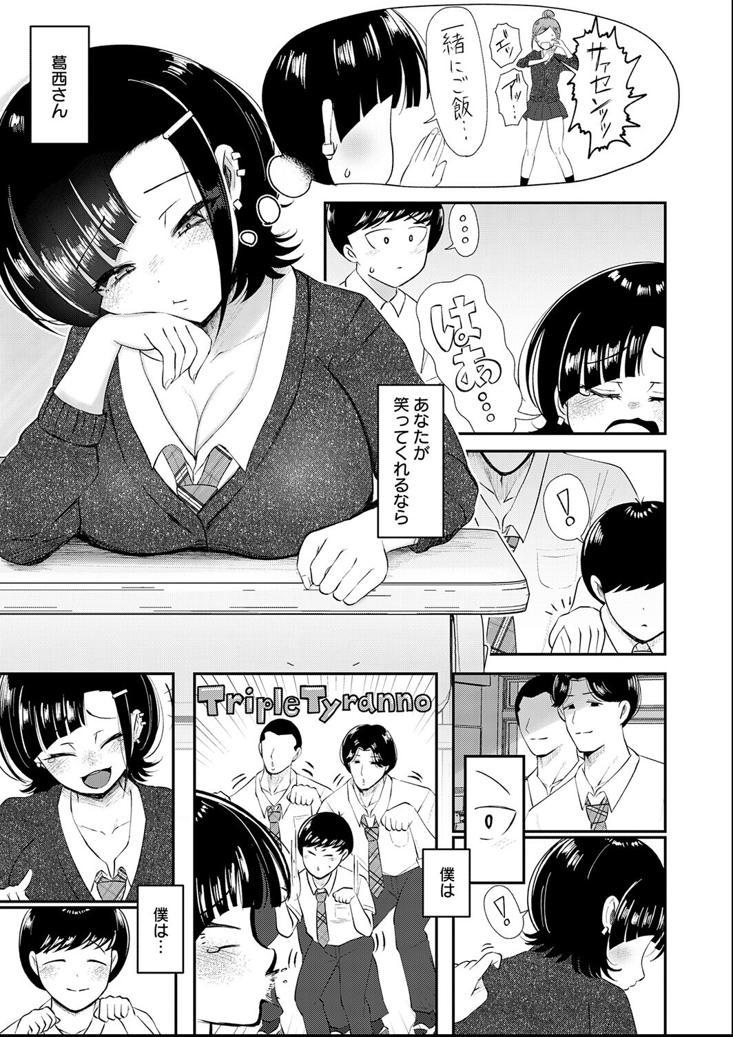 「ティラノサウルスクワット!!!」 いじられキャラの僕は、クラスの陽キャ・今村くんに命じられ、大阪からの転校生・葛西さんの前で一発ギャグをさせられる……。 一見強面な葛西さんの沈黙にビビっていると── 「なんやそれ アンタおもろすぎやろ!!」とまさかの大爆笑!? 実は気さくで優しい葛西さんは、いつしか僕らのグループに加わって、僕の学生生活は色づき始めた♪ イジリもなくなり、むしろ最近は今村くんとも仲がいい! いつも笑いかけてくれる葛西さんに、僕は徐々に特別な感情を抱き始める。 「葛西さん あなたが笑ってくれるなら 僕は……」 そんなある日、今村くんは特別にいいものを見せてあげると動画を見せてきた☆ ──ってあれ?これハメ撮り? この声どこかで…もしかして……葛西さん!?!? 新感覚NTR名手・JUNN先生描く、巨乳関西弁JKが初めてを奪われるハメ撮りで鬱勃起BSS!!