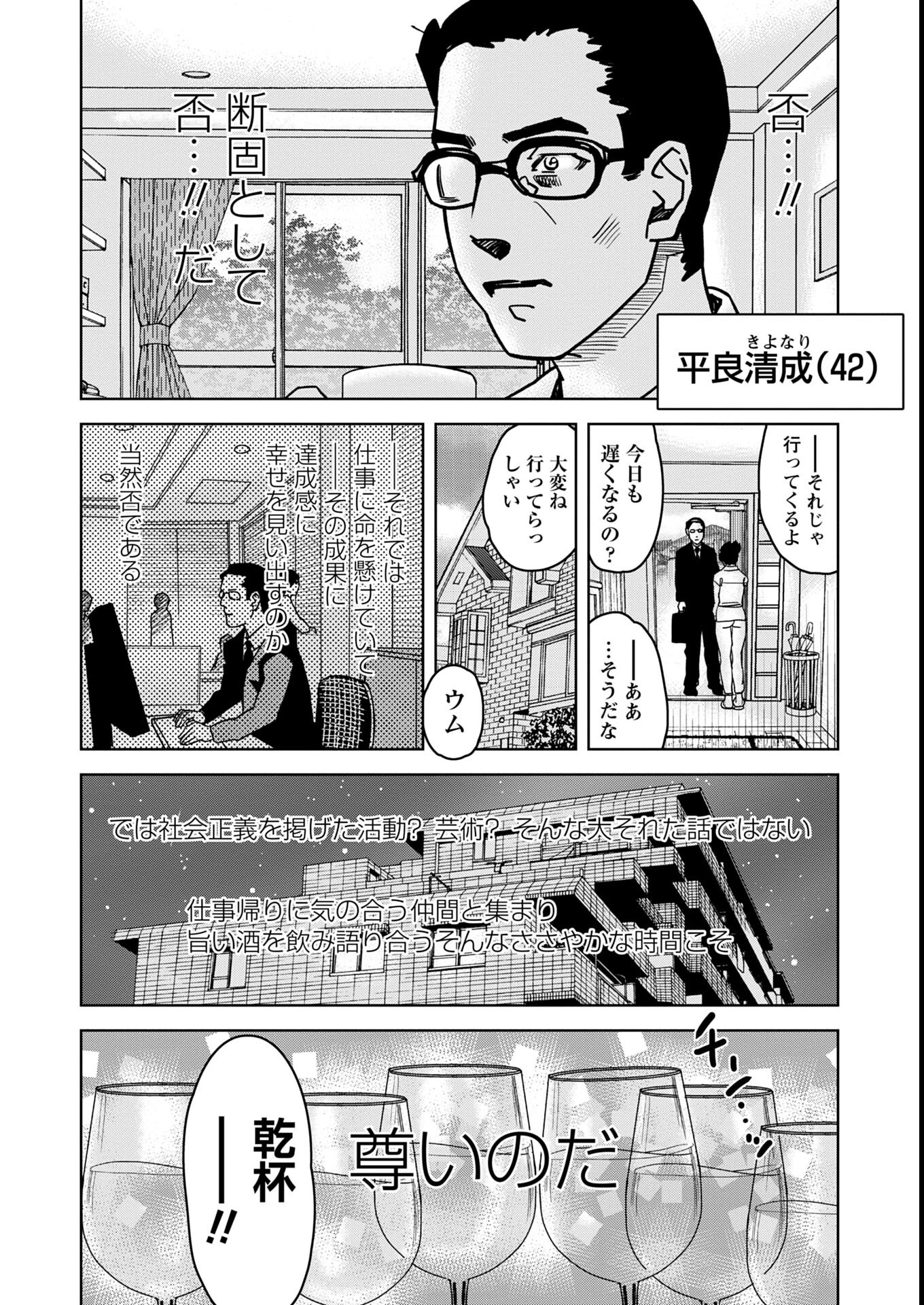 順風満帆の家庭を築きながらも幸せを感じない主人公は「幸福の追求」のため、同好の士と女子校生カップルを拉致監禁する。 意識を失ったままの美少女に挿入、集団乱交の夜が明ける!!