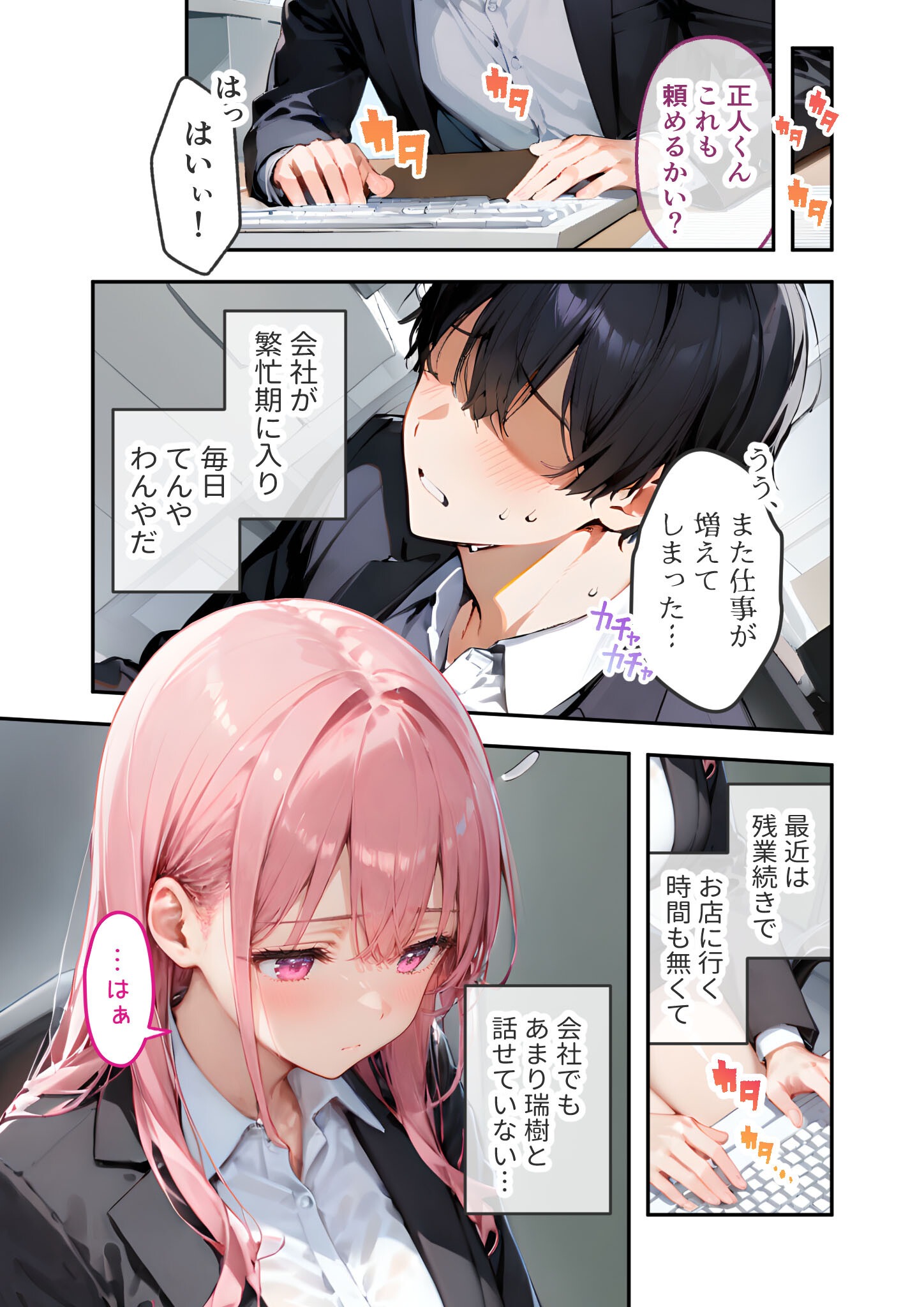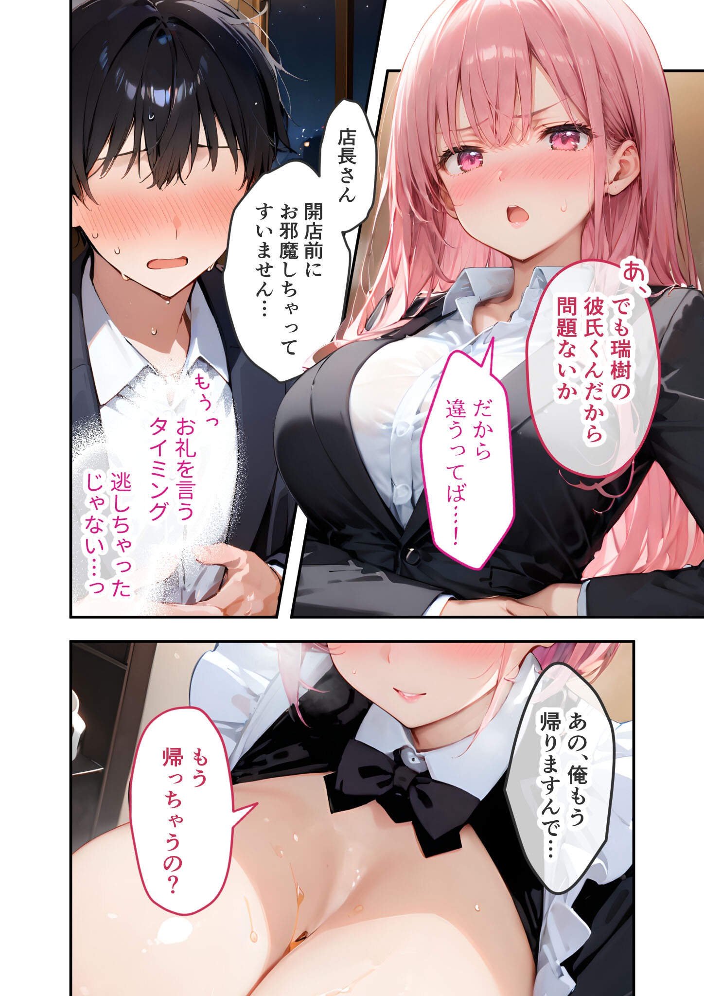 瑞樹、今日のは珍しいミスだったな… 落ち込んでないといいけど…こうなったらもう、仕事終わりに店に行くしかない…! 一言だけ励まして帰ろう 「あらあら〜?」 「開店前で誰もいないからってお店の子にちょっかいかけるのはちょっとね〜」 「店長さん!そ、そんなつもりでは…!」 「正人くんが瑞樹の彼氏に相応しいか…」 「お姉ちゃんが査定しないとね」 コミック48P+おまけイラストページ3P収録! 【注意事項】 ※本作品のシチュエーションは全てフィクションです。登場する人物や設定等は、すべて架空のものとなります。 ※この作品内に登場するキャラクターは全員20歳以上です。 ※本作品はAIによる生成画像を使用して制作しております。 ※犯罪、その他違法行為を美化または助長する意図はございません。