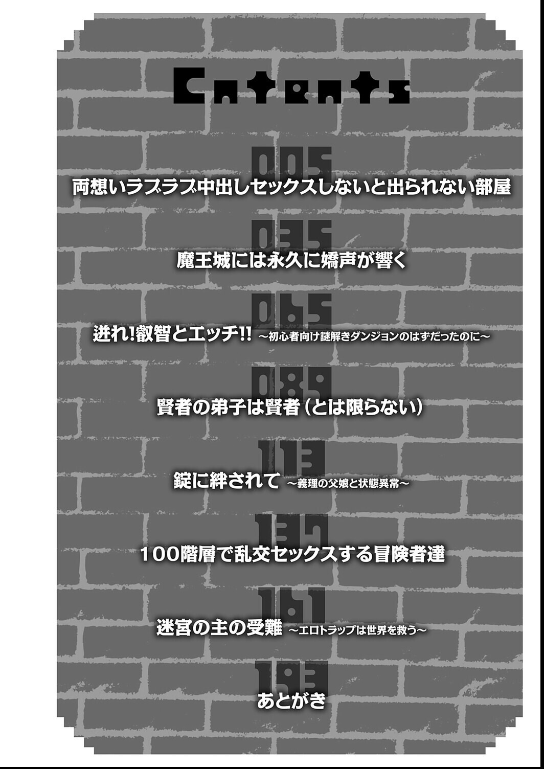 かつて、快楽に満ちた迷宮で溢れた国があった──。 両想いラブラブ中出しセックスしないと出られない部屋! 仲間を指定の回数イかせるエロ謎解きダンジョン! ステータス異常の治療のため、チ○ポで膣内の魔法を解除! 発情トラップまみれの難関ダンジョンで、パーティ全員大乱交! そして、千年前この国にかけられた呪いと、 最深部で待ち受けるダンジョンマスターの願いとは──!? 数々のエロクエストを達成し、目指せ探索率100%! 各地のダンジョンでハメまくり!最深異世界ファンタジー!!