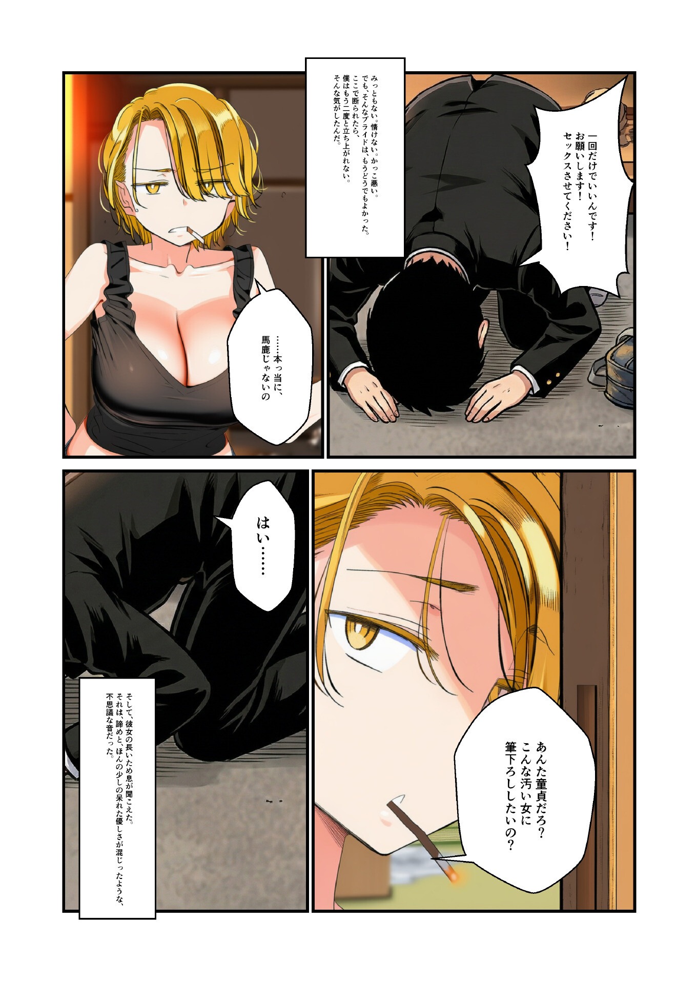 金髪ヤンキーのお姉さんに筆下ろしされるとか男のロマンだろ!土下座して頼み込む童貞の必死さがリアルで共感できるし、姉さんの呆れ顔からの展開が熱い。165円でこのシチュが楽しめるのはアリ