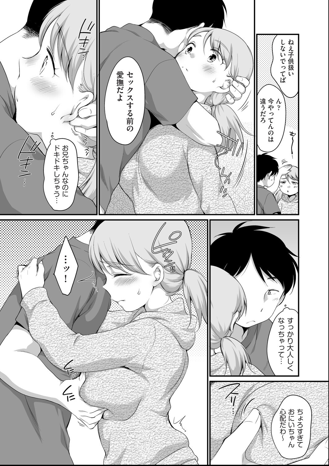 お兄ちゃんに自ら頼んで紹介してもらった土方君とセックスが出来ないでいる妹。好きなのに痛くて入らないのが原因と兄に相談すると、夜に兄の部屋に来るように言われる。部屋に入ると本当の恋人のようにハグされパンティの上からアソコを指で愛無され濡れてしまう。より本格的にと兄もち●こを出してアソコへスマタしてきた。兄妹だから挿入はダメと一線は越えなかったが妹は兄のち●こスマタでイッテしまい、兄も妹の股間に精液をぶっかけてしまう…!?