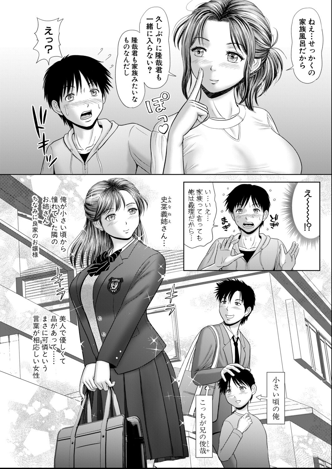 仕事が入った兄に代わって義姉と子供たちを旅行に連れてきた主人公は、彼女から「もう家族だから」と押し切られて一緒に家族風呂に入ることに!!しかも義姉は宴会好きの兄の影響で下品な裸芸を習得していた!! ※この作品はCOMIC真激2026年5月号に掲載している作品と同一内容になります。