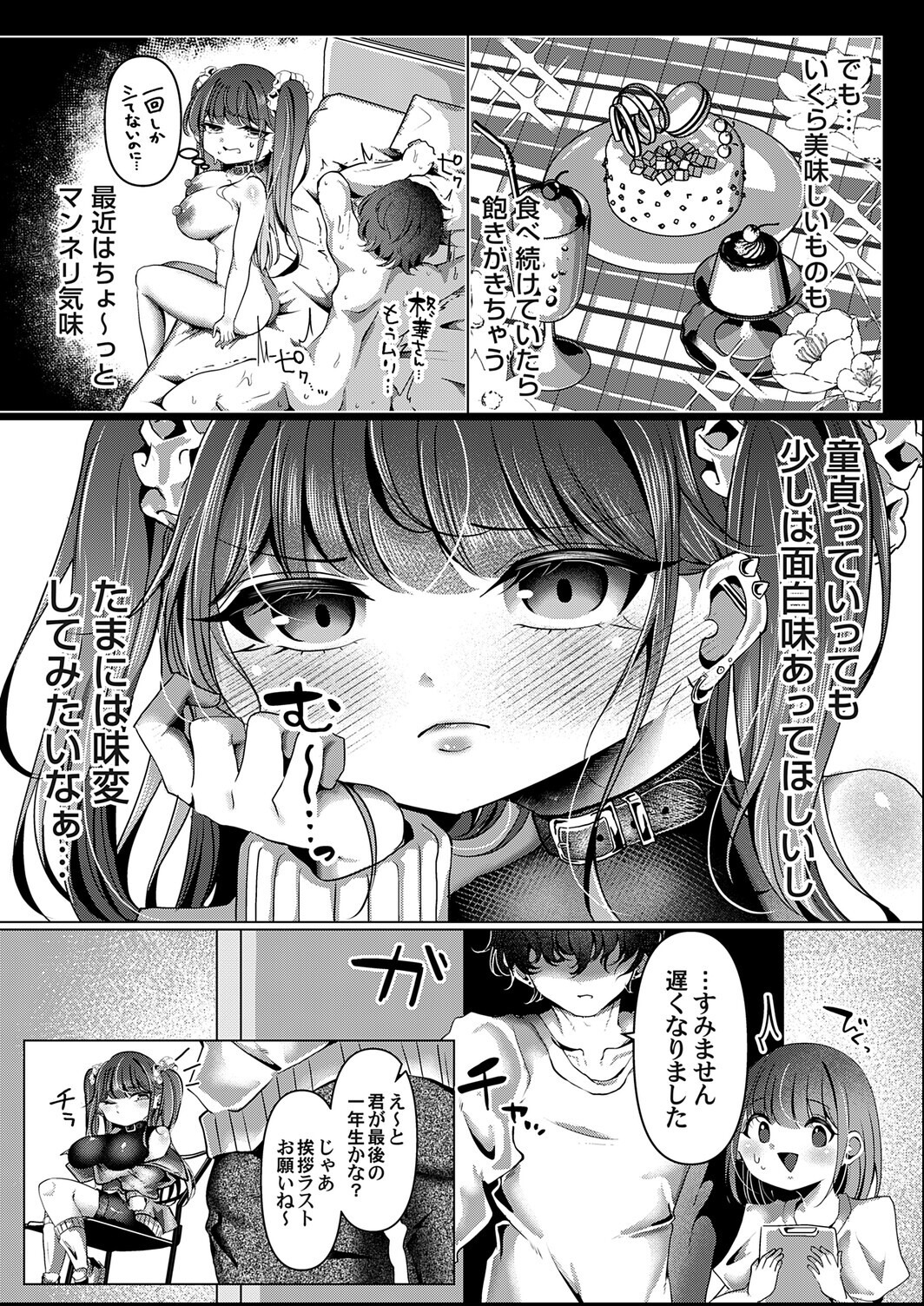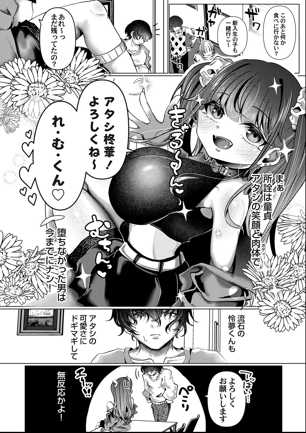 「セックスでは百戦百勝。今まで味見した男は数知れず。 男の情けな〜い顔も見れてアタシも気持ちいい。まさに一石二鳥!童貞狩り、今すぐした〜い!!!」 大学生の木代柊華(きしろ・しゅうか)は所属のサブカル研究サークルで、身長が小さいわりに巨乳なボディとイキった性格で童貞狩りを楽しみ大学生活を謳歌していた。しかしそんな生活もちょっとマンネリ気味だと柊華が思い始めてきた頃、とてつもなく身長が高く、体格が大きい霜月怜夢(しもつき・れむ)という一年生が入ってきた。「デッカ…」怜夢のあまりの身体の大きさに驚く柊華だったが、無口で陰キャっぽい雰囲気に興味津々。「この感じ絶対童貞!しまもまだ食べたことないタイプのオス。決め〜た」柊華は持ち前の笑顔と肉体で怜夢の童貞を奪おうと誘惑をし始める。柊華は怜夢に大きなおっぱいをわざと腕に当てたり、あげくは服をずらして乳首までみせて特別サービスとばかりに誘惑するが、怜夢は無反応……。童貞狩りに対して絶対的な自信をもっていた柊華は女としてのプライドまでズタズタにされ怒り心頭。「絶対に許さない…ヤるなら徹底的にヤッてひんひん泣かせてやる!!」柊華はついには童貞必殺のイラマを怜夢に炸裂させようと、怜夢のペニスを剥き出しにするべくズボンから取り出そうとする……しかし怜夢の股間からボロンと飛び出したペニスは、見たこともないような大きいサイズで……。新人作家・玄米が描く小さくても生意気で勝ち気なメスビッチと何もかも大きいな無口な童貞との壮絶で激しいエッチバトル!!