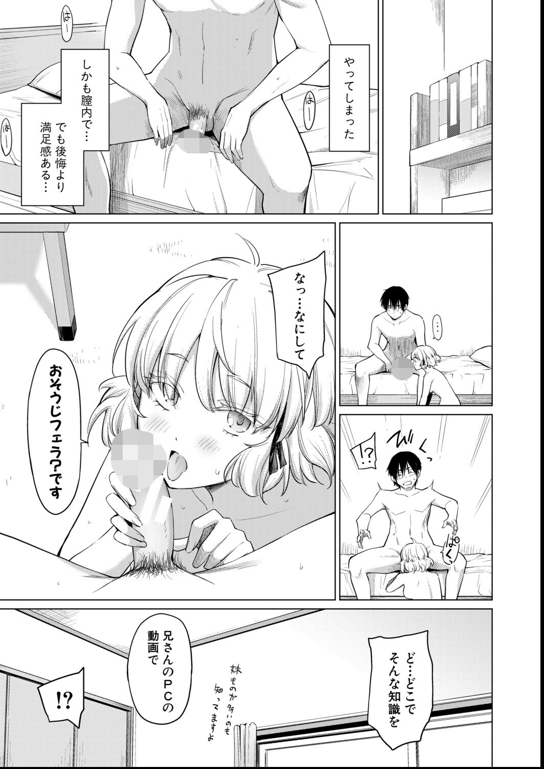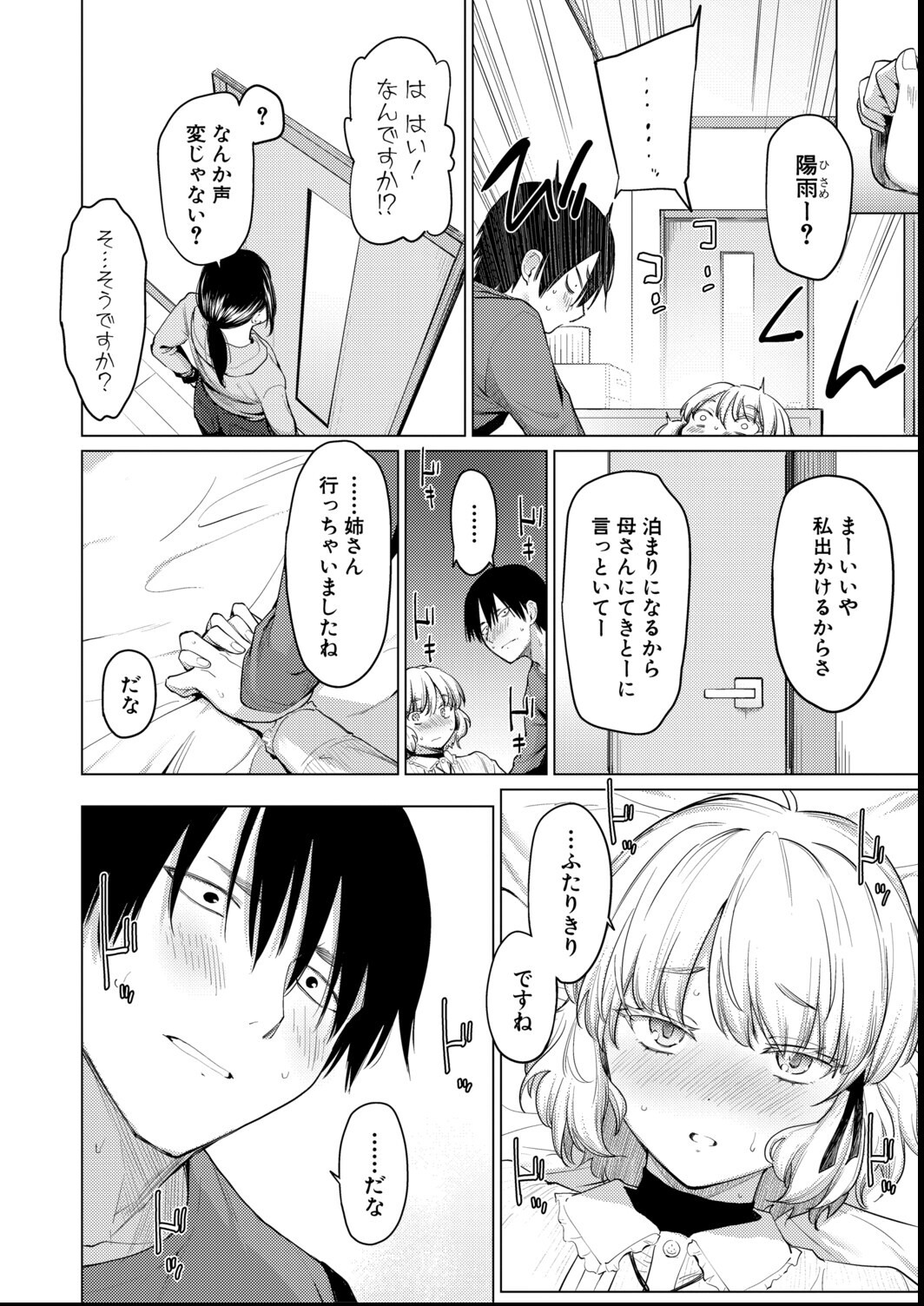 近親相姦というジャンルにおいて、甘やかし系の主従関係を軸に据えた構成は手堅いと言えよう。あおやまきいろの線は柔らかく、特に肌のハイライト処理と汗の描写に独自性がある。コマ割りはオーソドックスだが、見開きの使い方に緩急があり読みやすい。ただし、姉妹間の差別化がもう一段欲しかった。恋愛要素とエロのバランスは良好で、ラブコメとしても成立している点は評価できる。
