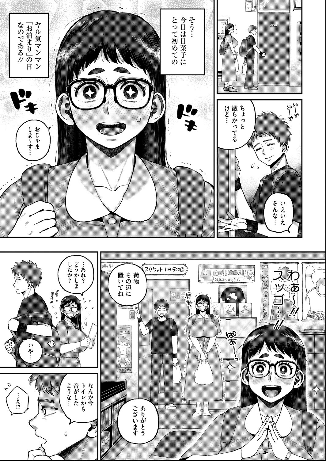 プロレスサークルの宮田先輩に片想いをしていた日菜子は、部室で奇抜なオナニーを興じている姿を宮田に見つかる大惨事を起こすが、実は宮田も日菜子のことが気になっていたと受け入れられ、幸せな初体験をすることに。 そして今日は宮田の部屋に人生初の「お泊まり」デート。期待を胸に部屋に入った途端、宮田がトイレから物音がすると言い出して──!!?