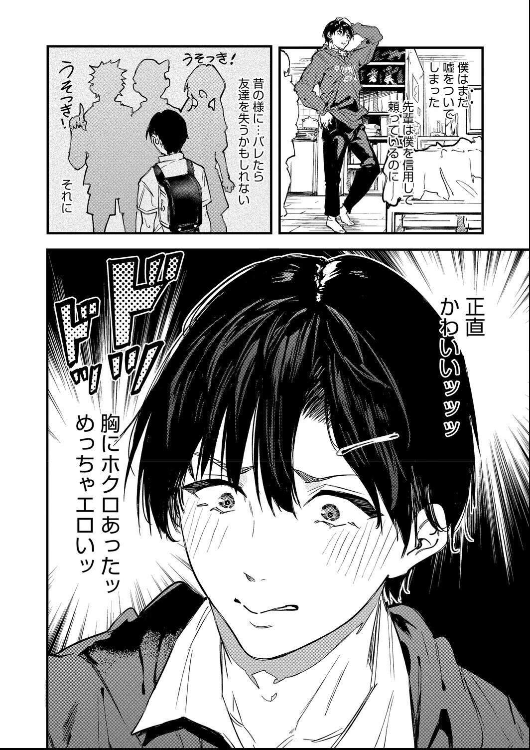 いつもゲームをしている気さくな先輩が「かわいくなりたい」と言い出し、後輩はその手伝いをすることに。服やメイクを試すうち距離は縮まり、思わぬハプニングをきっかけに互いを意識し始める。素直な想いを打ち明けた二人の関係は、やがて恋へと変わっていく。
