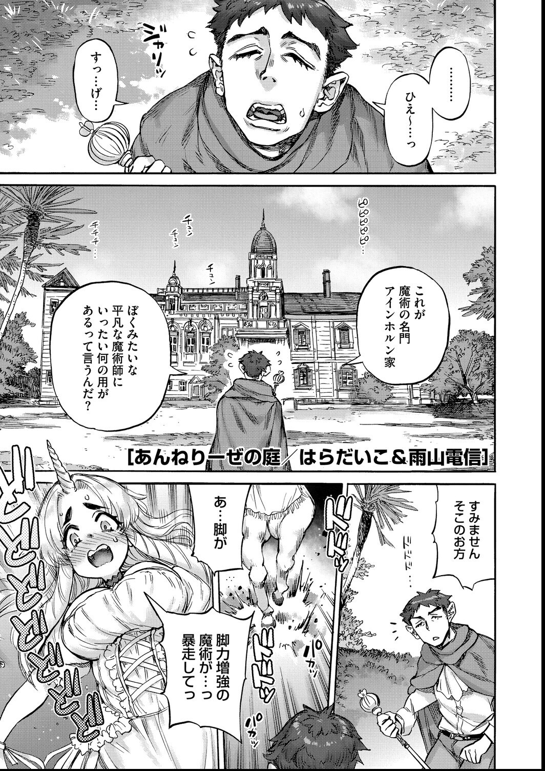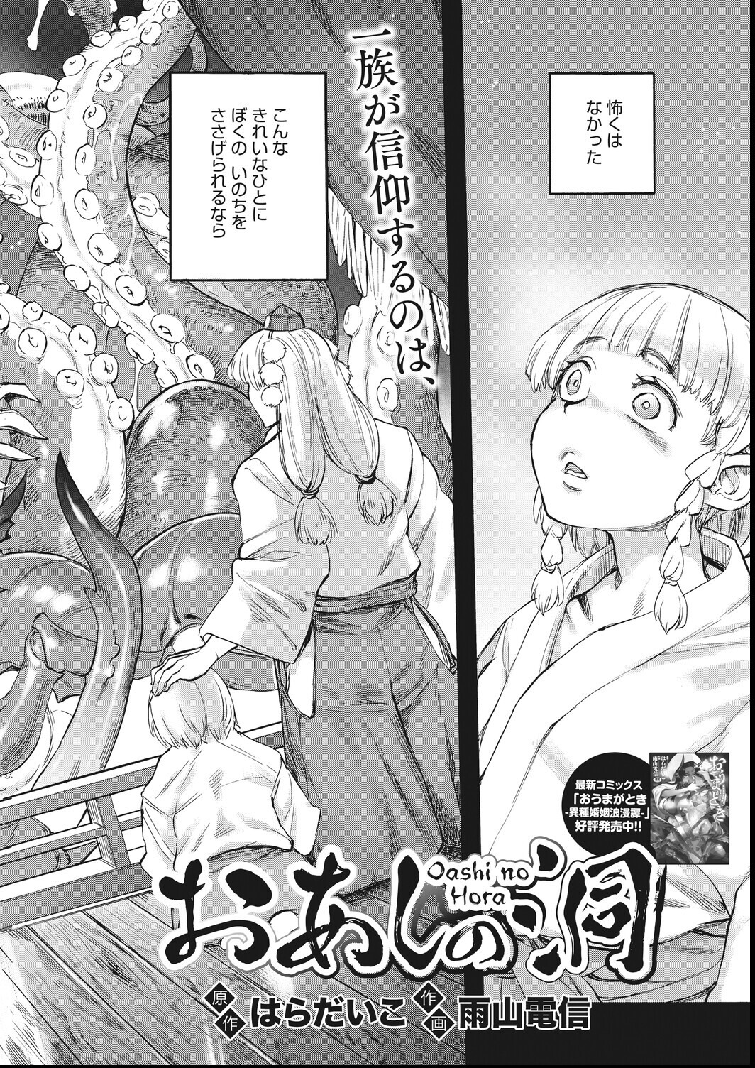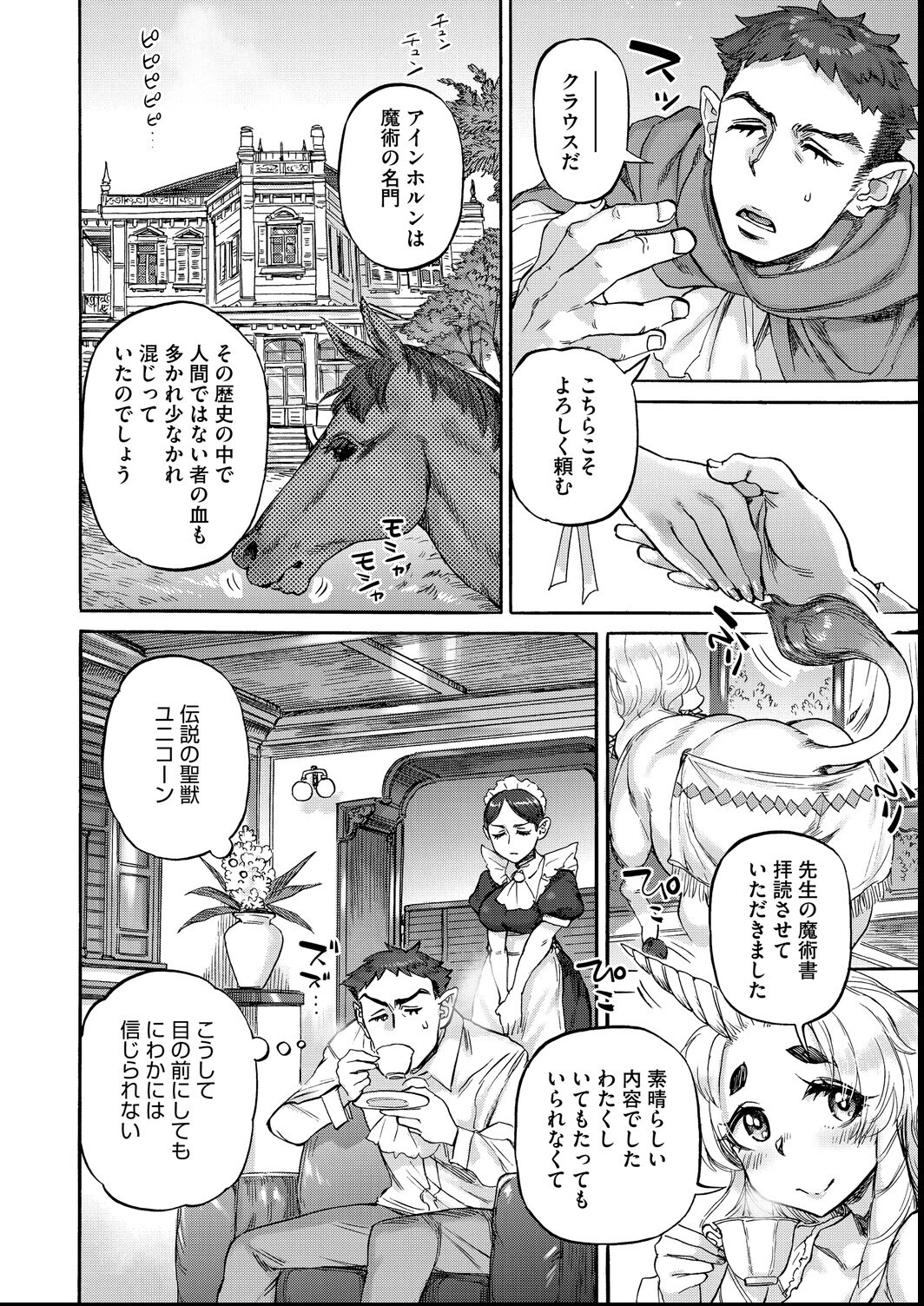 人外界の実力派コンビが満を持して贈る3rdコミックス。 まことの愛の前では種族の壁なんて関係ない! [あんねりーぜの庭] ☆ユニコーン(♀)×人間(♂) 平凡な魔術師・クラウスは、魔術の名門アインホルン家の当主・アンネリーゼの家庭教師になる。 アンネリーゼは希少種族である一角獣であり、その膨大な魔力を制御し、 当主として恥じない存在になることを願っていた。 そして魔術の修行に没頭し、クラウスの教えを受ける日々を過ごすうちに、 彼女の中に特別な感情が生まれていく――。 [おあしの洞] ☆百足の女神(♀)×人間(♂) 幼い頃に一度だけ見た、雄々しい百足の女神「おあし様」に恋をした千歳(ちとせ)。 その後、成長した彼はおあし様の生贄に選ばれてしまう。 愛した女神に命を捧げるなら本望!と覚悟するが、 捧げるのは命ではなく「精液」だった…! おあし様の巨大な体と、無数の手足に捉えられた千歳は、 抵抗もできずに全身を愛撫され、何度も吐精してしまい…? [さよこの夏] ☆幽霊(♀)×人間(♂) 都会の少年・命彦は、夏休みに帰省した田舎で、死の病に侵された女性「小夜子」と出会う。 恋に落ちる命彦だが、小夜子は間もなくこの世を去る事となる……。 やがて、生前住んでいた家には幽霊がでると噂が経ち始める。 様子を見に行った命彦の前に現れたのは、生前のやせ細った姿とは似ても似つかない、 豊満で生命力に溢れた小夜子の幽霊だった! 小夜子の胸とおま○こを愛撫し、無我夢中でその膣内に吐精する様は、 まるで生命を注ぎ込もうとするかのようで――。 [あやねの呪] ☆鬼(♀)/人間(♂) かつては100体の鬼を使役したという名門の鬼生田家も、 今では当主の尊と女鬼のあやねが残るのみ。 尊はあやねを愛しているが、人と鬼では子を作れず、お家滅亡も間近であった。 しかし尊は執念で、名門に残る呪術を蘇らせて自分とあやねに施す。 すべては、あやねと子供を作れるようになるために…。