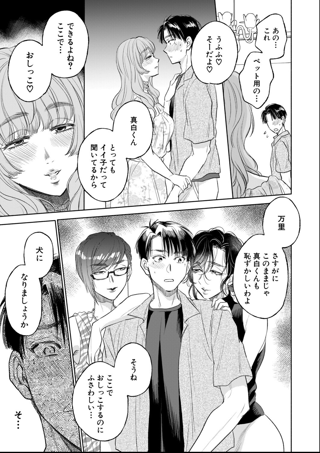 美熟女に次々と犯されて犬みたいに調教されるとかM男にはご褒美でしかない!知朱に抱かれた後に友人の多香子にもやられて、さらに万里にも調教されるっていう連鎖がヤバい。サブスカ先生の熟女の身体のラインがエロくて、辱めの表情描写がリアルすぎる。3P展開の構図もいい。