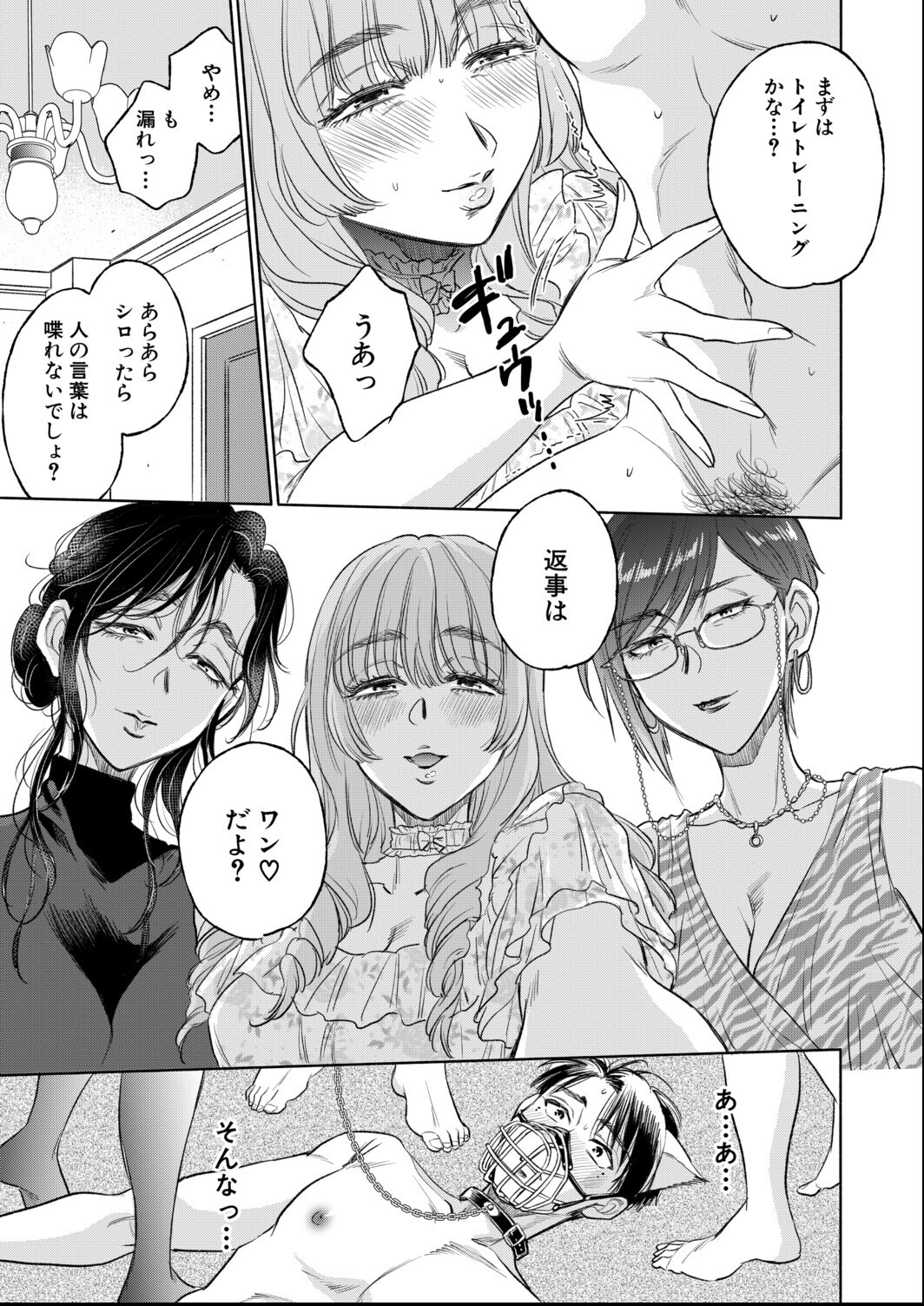 美熟女3人に次々と調教されるっていうM男向け展開が好きな人には刺さるよね。知朱から多香子、そして万里と増えていく女性陣に犬のように扱われる流れがフェチ心をくすぐる。サブスカ先生の熟女描写が色っぽくて、辱めシーンの表情描写も丁寧。330円でこの濃さならコスパ的にも満足だよ。
