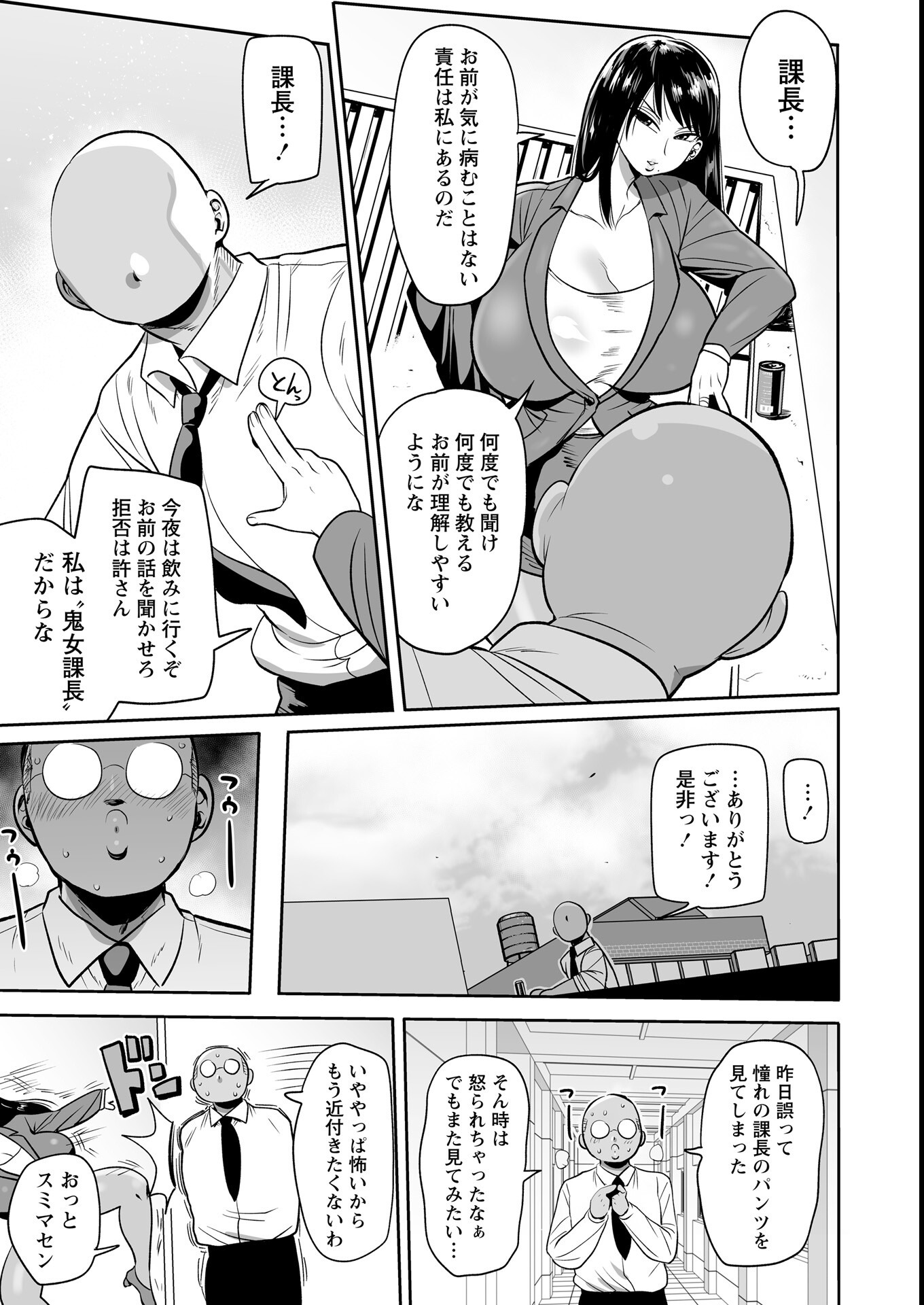 鬼女課長が朝から晩まで社内でヤられまくる展開がブッチギリで楽しい!部下にベロチュー、部長にディープスロート、大学生に中出しされて社長に大量発射ってもう詰め込みすぎでしょ!でもそれが最高なんだよな。イラマチオからの即ハメの流れとか、エロのテンポが神がかってる。きぃう先生の巨乳描写も素晴らしい!
