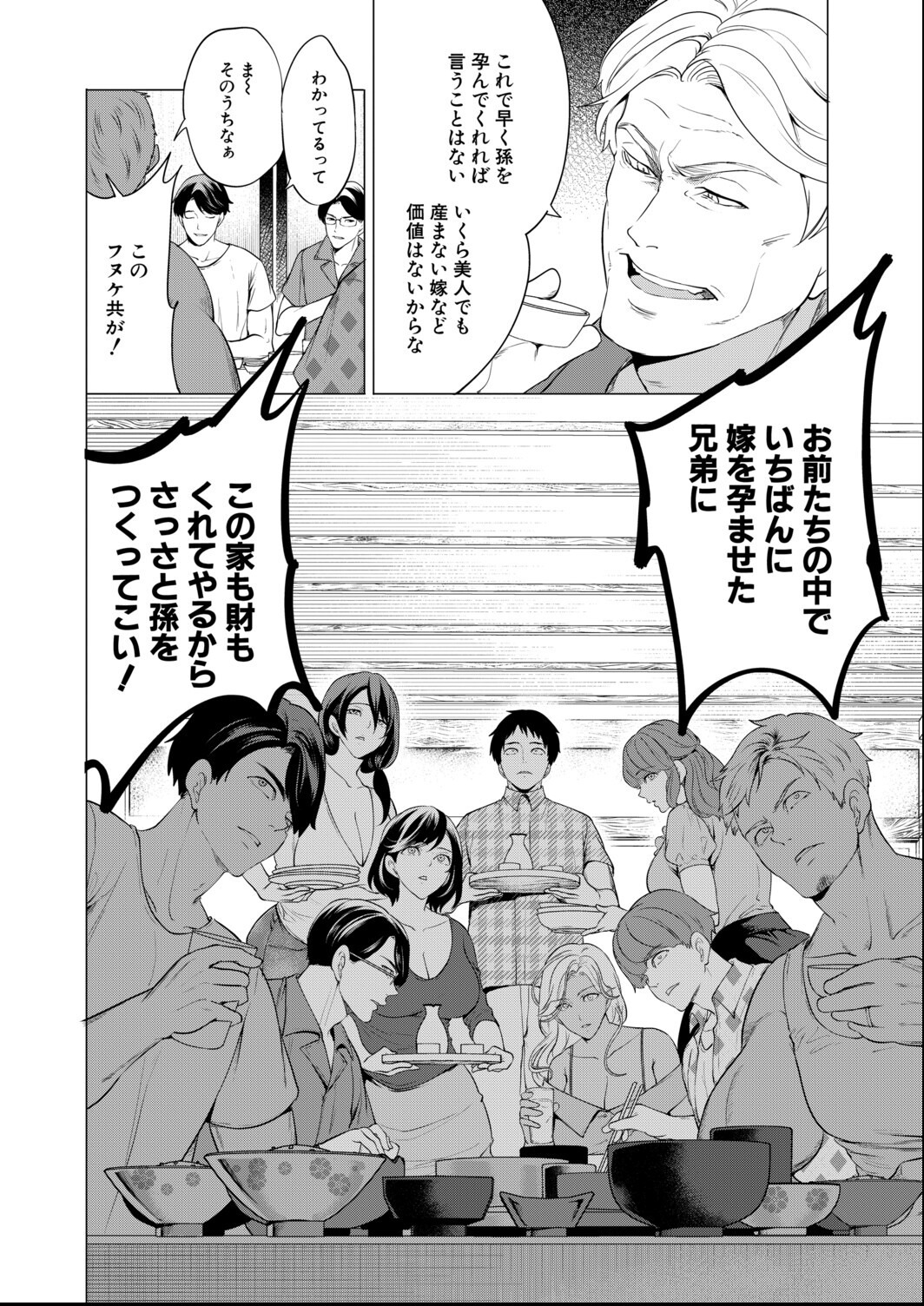 五人兄弟の末っ子の祐五は、兄弟の中で唯一結婚していない独り身で肩身の狭い思いをしていた。 しかし兄とその嫁たちも子宝に恵まれずにいた。 ある帰省の集まりで兄弟達の父親は酔った勢いで「孫を作った兄弟にこの家と財をやる」と宣言する。 長兄の嫁・澪は祐五に孕ませて貰う事で彼に家を継いでもらおうと提案してきて……!?