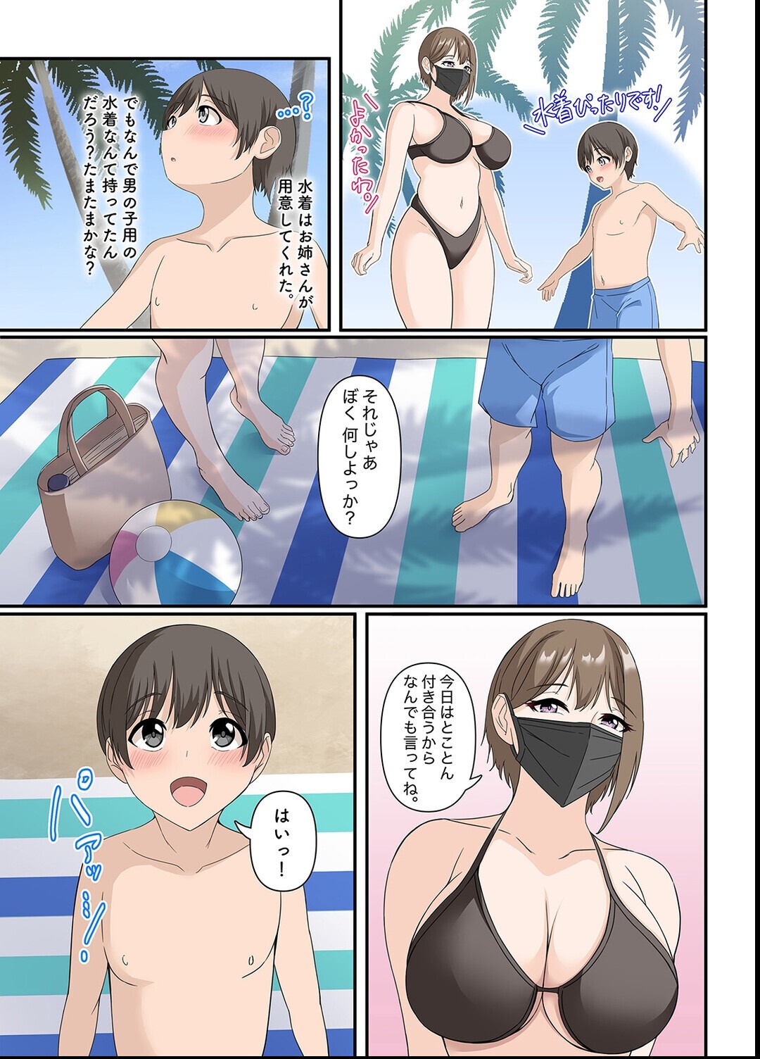 家事代行でお家にやってきたお姉さん。手際よく掃除をしてくれているけど、ぴちぴちジーンズの後ろからお尻が見えちゃってる…。「ど、どうしよう教えた方がいいのかな…?」そう思ってウロウロしているうちにバケツの水をひっくり返してびしょ濡れになってしまった!?だけど邪魔したぼくをおねえさんは叱ることなく、「風邪ひく前に…服、脱いじゃったほうがいいね」。いわれるがまま裸にされちゃった僕とお姉さんは、脱衣所でふたりきり。思わずアソコがふくらんでしまったぼくに、お姉さんは「ヒミツの遊び」を教えてくれて…!?