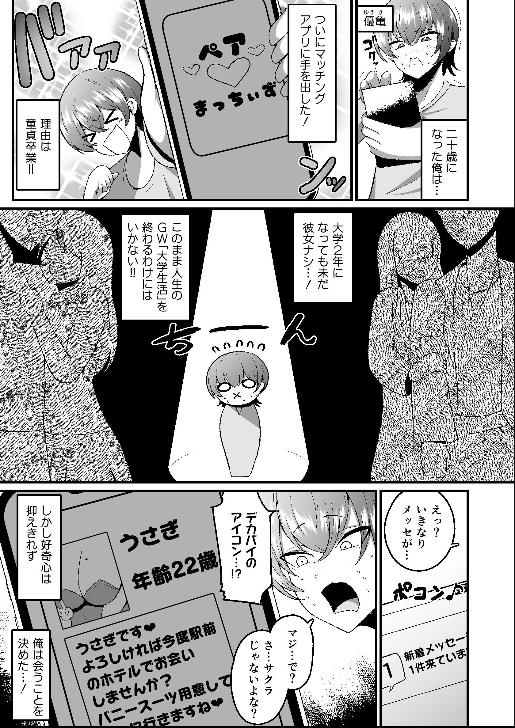【巨体肉感アラフォーバニーおばさんと迫る体格差プレイ】 マチアプで偶然マッチングした相手は「巨体爆乳のアラフォーおばさん」だった。 倍近く年上の相手に困惑する優亀(ゆうき)だったが、 宇佐木は引き止めようと、若い頃に着たバニースーツを無理くり着る。 スーツからこぼれそうな肉量に、優亀の理性は吹っ飛ぶ。 むちむちで肉厚な身体に触れ、優亀はそのまま、宇佐木の巨体に抱き寄せられていく…。 熟れた巨体ごと抱きしめてくる年上女性の包容力。 優しく、そして激しく、その巨体に優亀のすべてが包みこまれていく。 ****************************** 107にて頒布予定新刊の電子版になります。 本文34P ゲスト寄稿1P プレイ内容など 顔面騎乗位、圧迫プレイ、ぽっちゃり、熟女、バニーガール、 ひょっとこフェラ、ブチュキス、剛毛、オホ顔など… ****************************** ゲスト原稿作者(敬称略) 破壊神 作者 ZIRAN(じらん) 43ページ