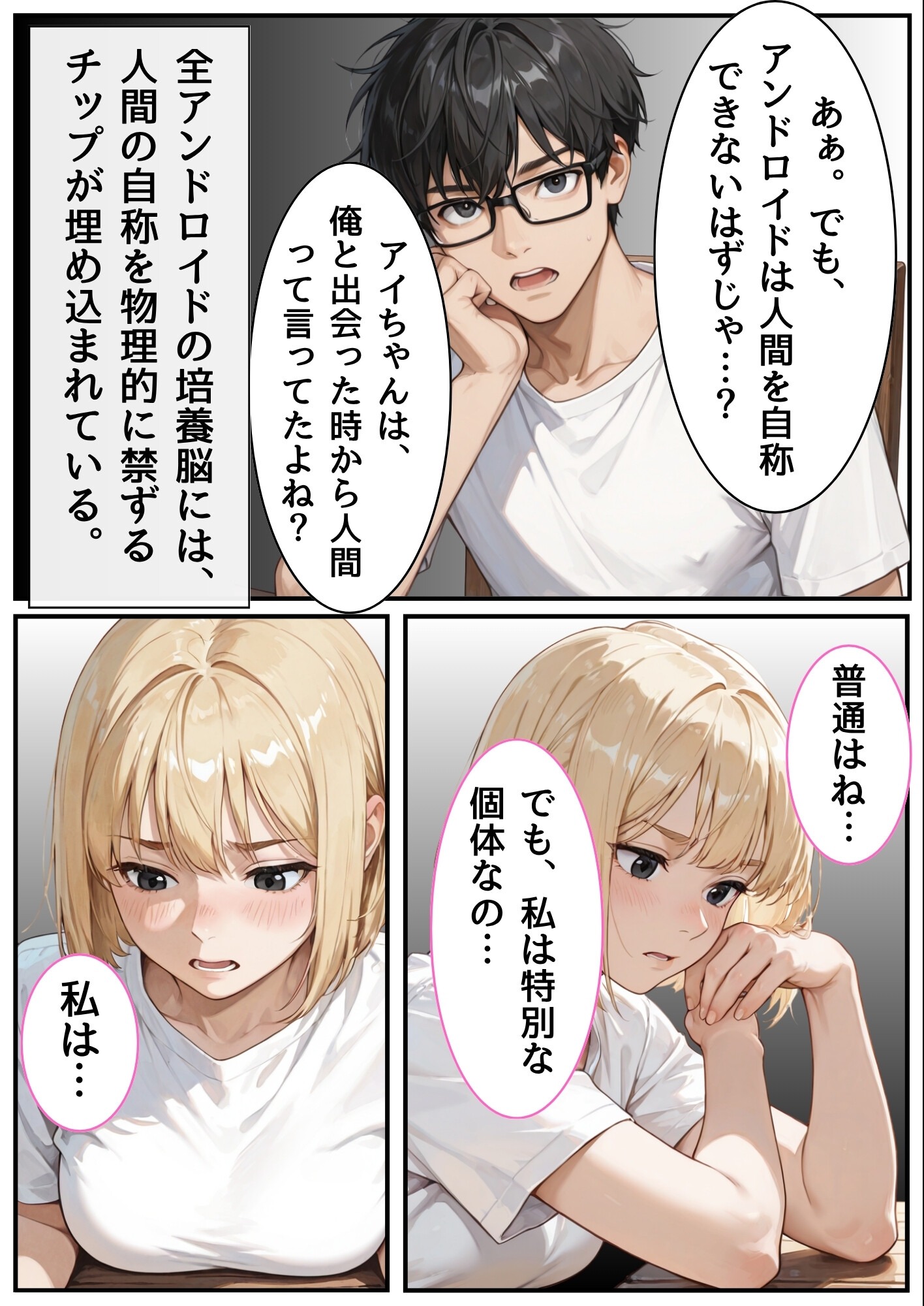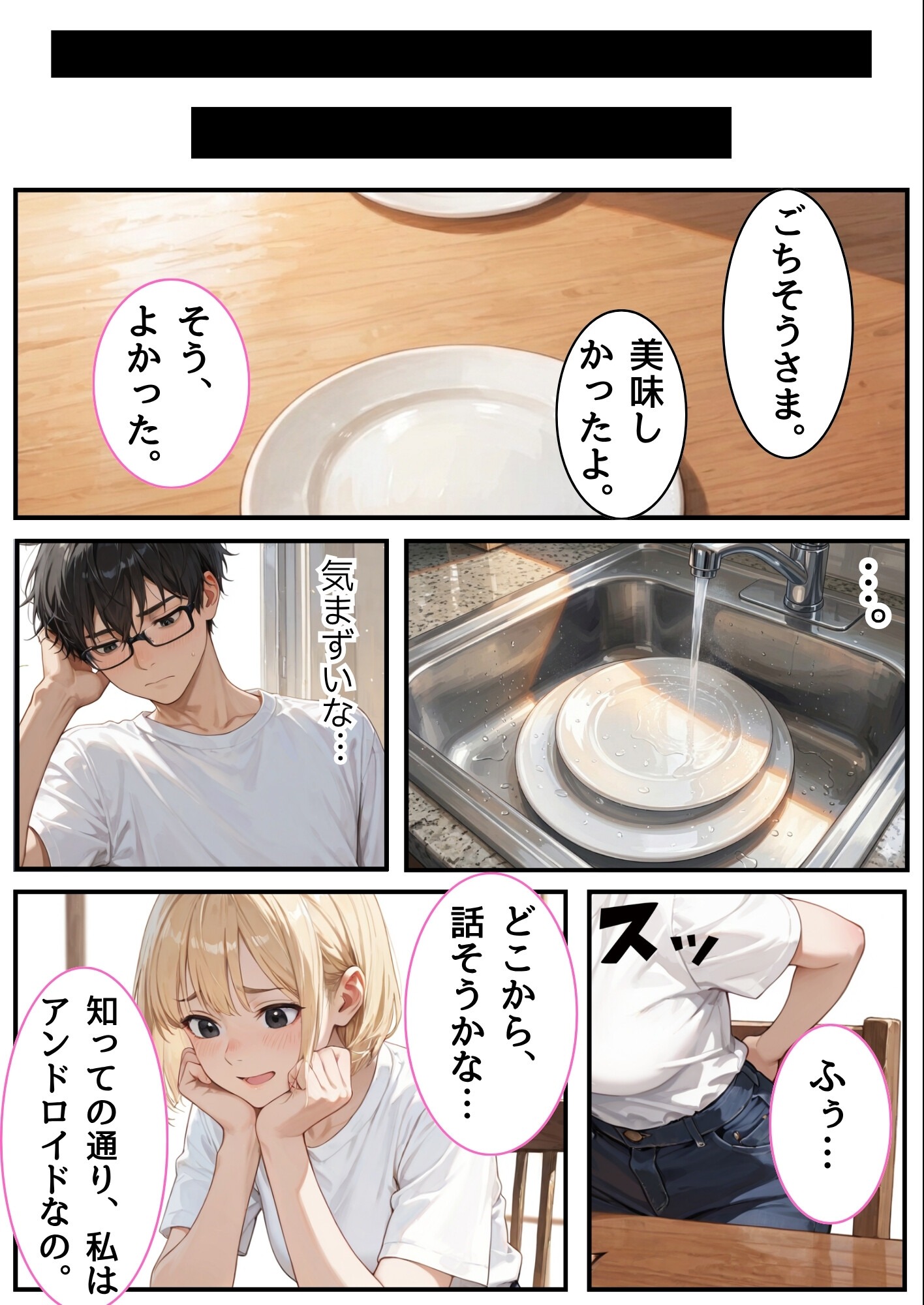 『これって…アンドロイドの特徴だよな…?』 2050年、日本。 人口減少に直面した政府は日本の大企業に国産人型アンドロイドの開発を要請し、人権を与える政策を実施。その結果、アンドロイドは人間とほぼ区別がつかなくなり、日本人達は次第にアンドロイドを受け入れていった。 そんな時代の中、売れない作家の主人公、鈴木慎太郎(32)は、人間至上主義者。自分の仕事を奪っていったアンドロイドをひどく恨んでいた。 AIやアンドロイドがほとんどの仕事を奪った今、小説家という仕事にしがみつきながらも作品は一向に売れず、唯一の救いは最高に可愛くてエロい、人間(?)の彼女、西野愛理(27)だった。 しかし愛理は慎太郎とのエッチを頑なに拒否し続ける。 「二人の初めてはもっと大事にとっときたいの……」と毎回かわされ、欲求不満が限界に達した慎太郎は、ある夜、寝ている彼女にこっそり手〇ンを試みるがー。 ※登場人物は全て20歳以上となります。 ※本作品はAIによる生成画像を使用して制作しております。