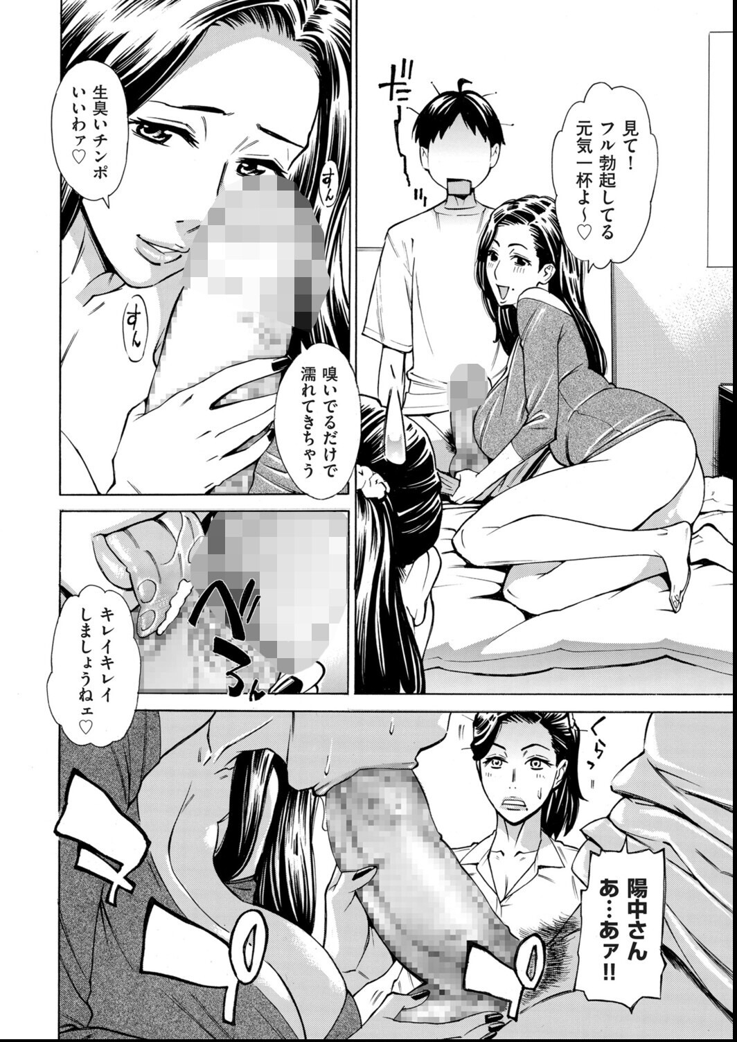 3人の熟女キャラに明確な個性と関係性を持たせた上で、1話に収めた構成力は見事である。牧村あかり氏の線は丸みがあり熟女体型の豊かさを表現するのに適している。コマ割りも情報量の多さに対して整理されており、読者が迷わないよう設計されている。