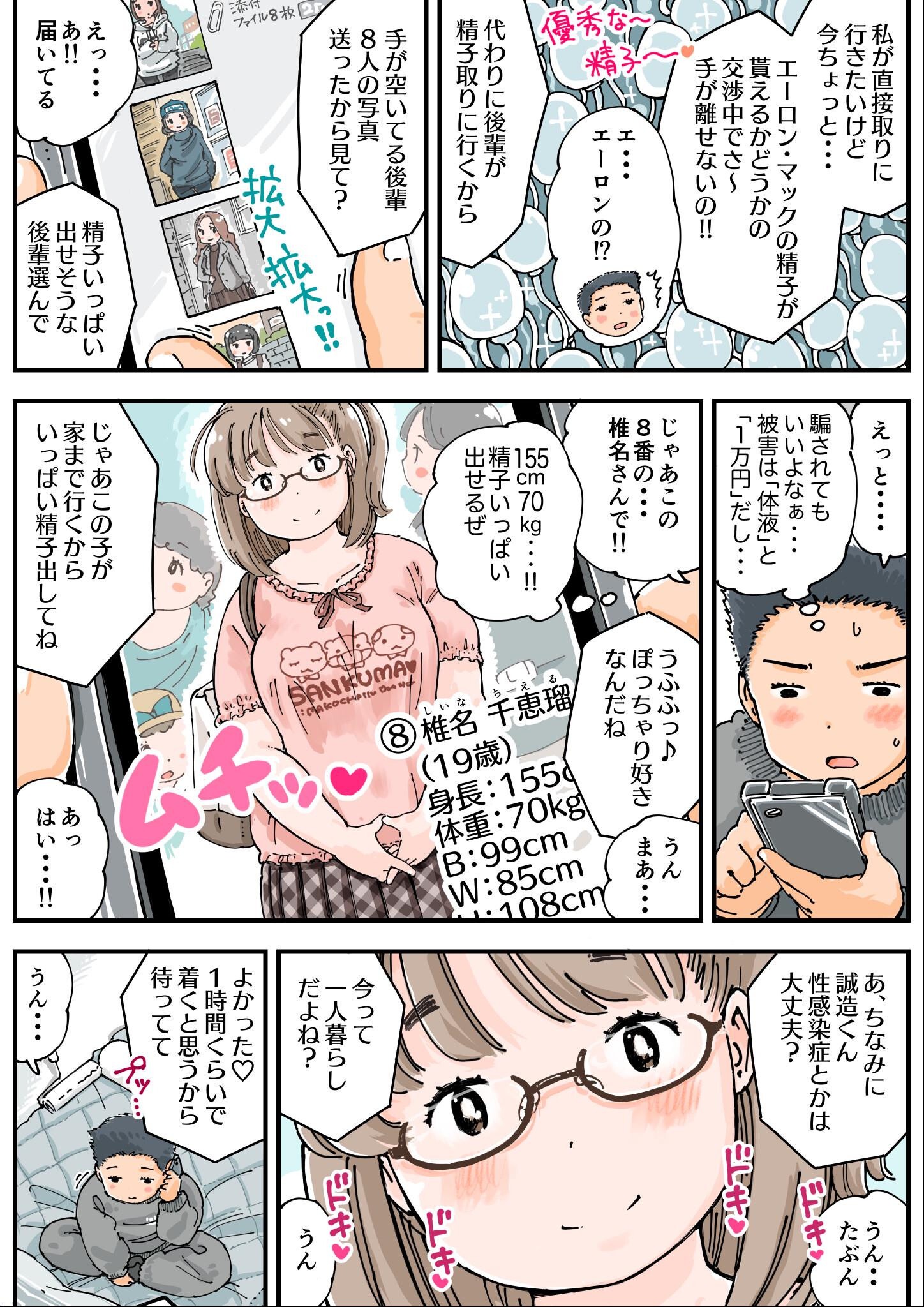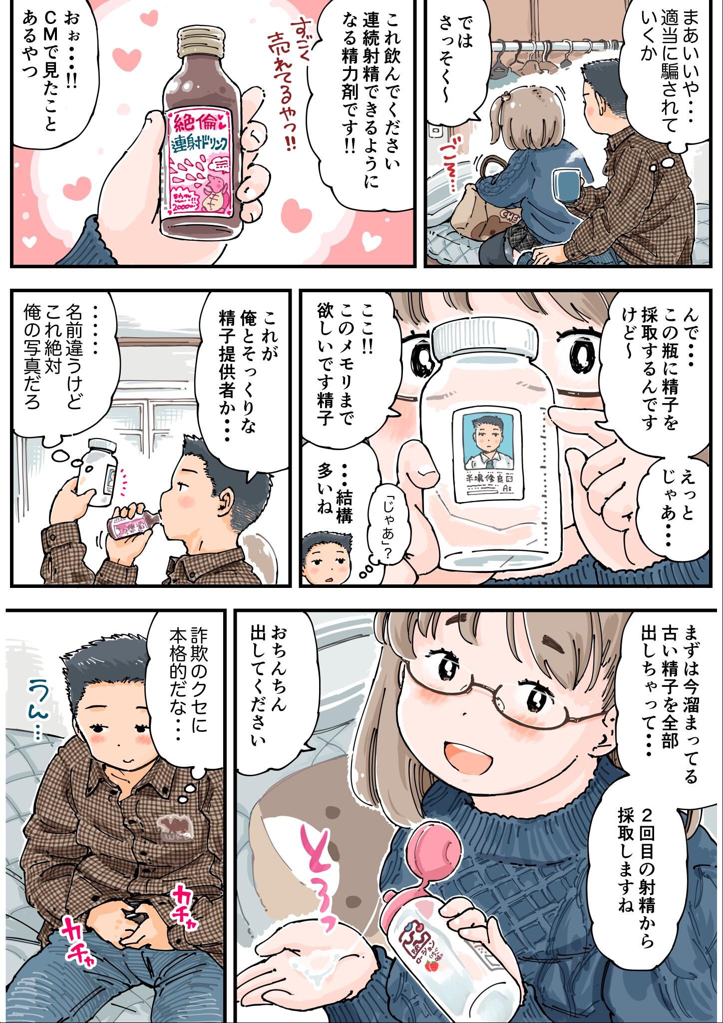 《内容紹介》 オレオレ詐欺の女版 『わたわた詐欺』が新登場!!! (※「わたしわたし」を短縮したものです) 詐欺に引っかかると1万円と「体液」を奪われるらしい… た…たたた…体液〜〜〜!? ということでさっそく騙されてみると 謎の精子バンクからぽっちゃり女子「椎名ちえる」 (19歳・155cm・70kg・ BMI29 肥満1度・性欲旺盛・ アニメ声・クマ下着装備)が精子を取りにやってきた! ちえるとの生セックスで精子をたっぷり採取したあとは… わたわた詐欺グループの謎に迫ります!!! 別に迫らなくてもいいかもですが…迫ります!!! 迫らせてくださいお願いします!!! よかったらどうぞ♪ フルカラー <表紙など4p+本編46ページ>