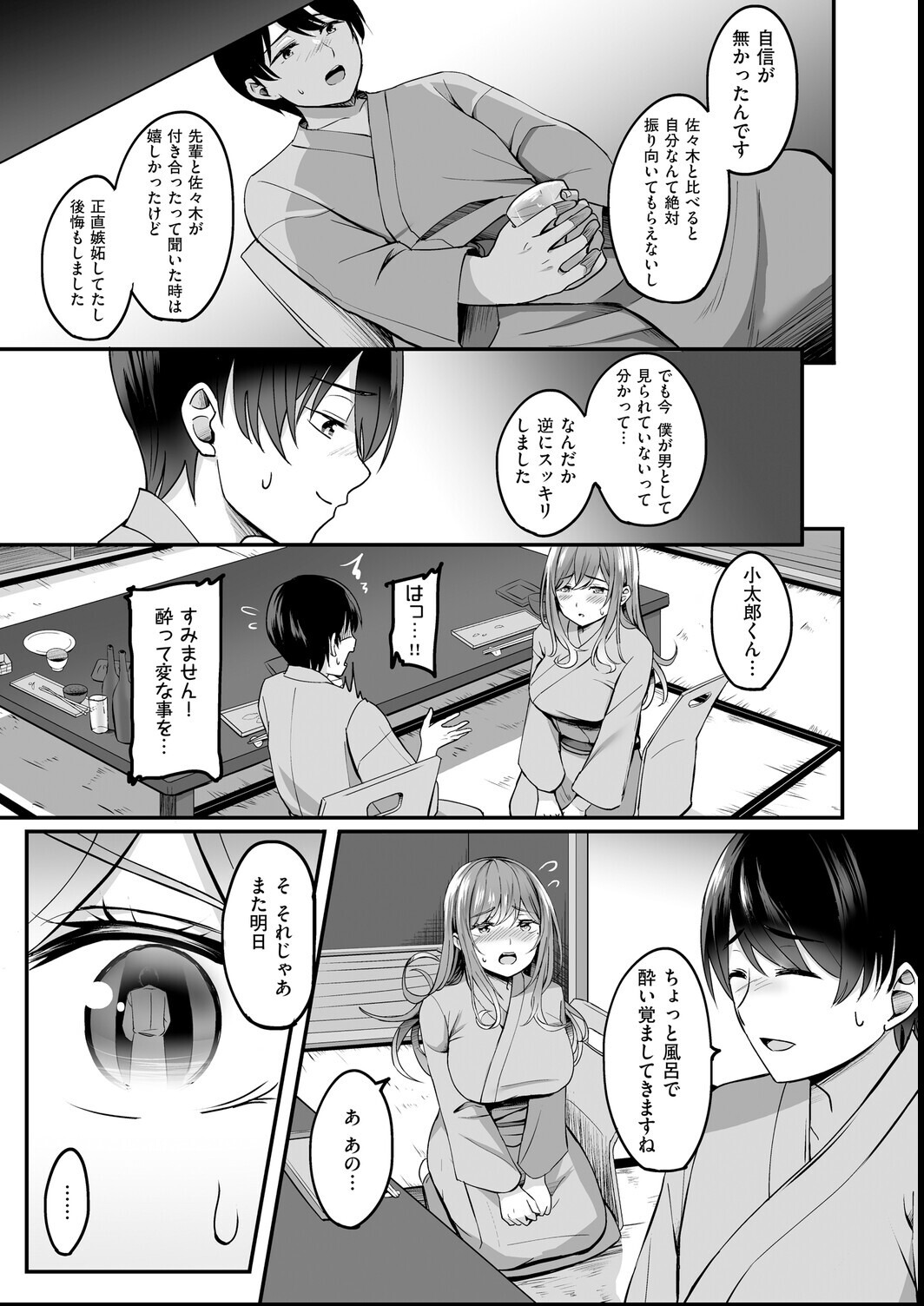 「旦那と出会う前からずっと…好きだったの」 大好きだった会社の先輩・愛里が、同期の佐々木と結婚した。 小太郎はその傷心旅行に出かけるのだが、あろうことかその先輩夫婦と鉢合わせてしまう。 三人で飲み会をした後、ひとり温泉に浸かる小太郎。しかしそこに裸の愛里が現れてーー!!? イケナイ関係…だけど、シたい。 その背徳感は、恋のスパイスーー。 純愛と背徳が入り乱れまくる大人気同人シリーズが待望の書籍化! 描き下ろし漫画も8P収録♪ <収録作品> 「人妻と温泉と。」 「人妻と温泉でいちゃラブSEXが止められない!」 「人妻と温泉でいちゃラブSEXが止められない!!」 「ナースのえっちなおしごと」 「湯けむりの先に」