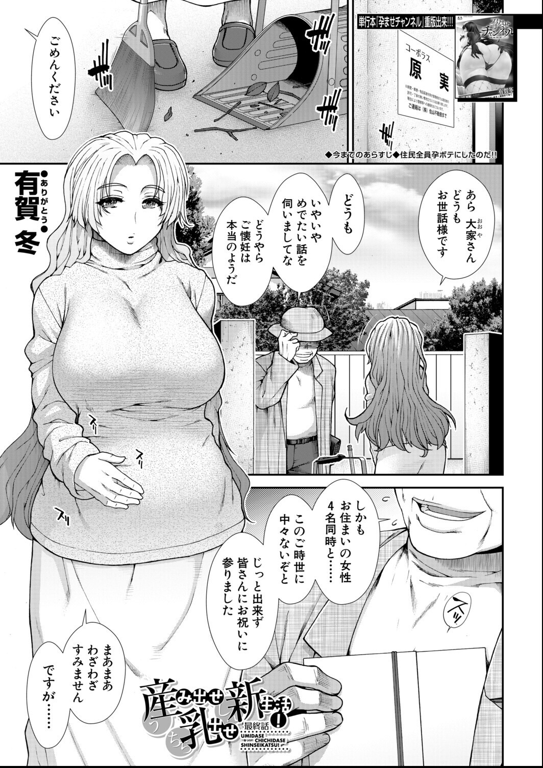 妊婦ハーレムという特化したジャンルにおいて、アパート住人全員を孕ませるという大胆な設定は潔いと言えよう。有賀冬の作画は巨乳と妊婦体型の描き分けに長けており、母乳描写にも手を抜いていない。ただし単話のページ数でハーレム展開を詰め込んでいるため、個々のキャラクターの掘り下げがやや浅い点は否めない