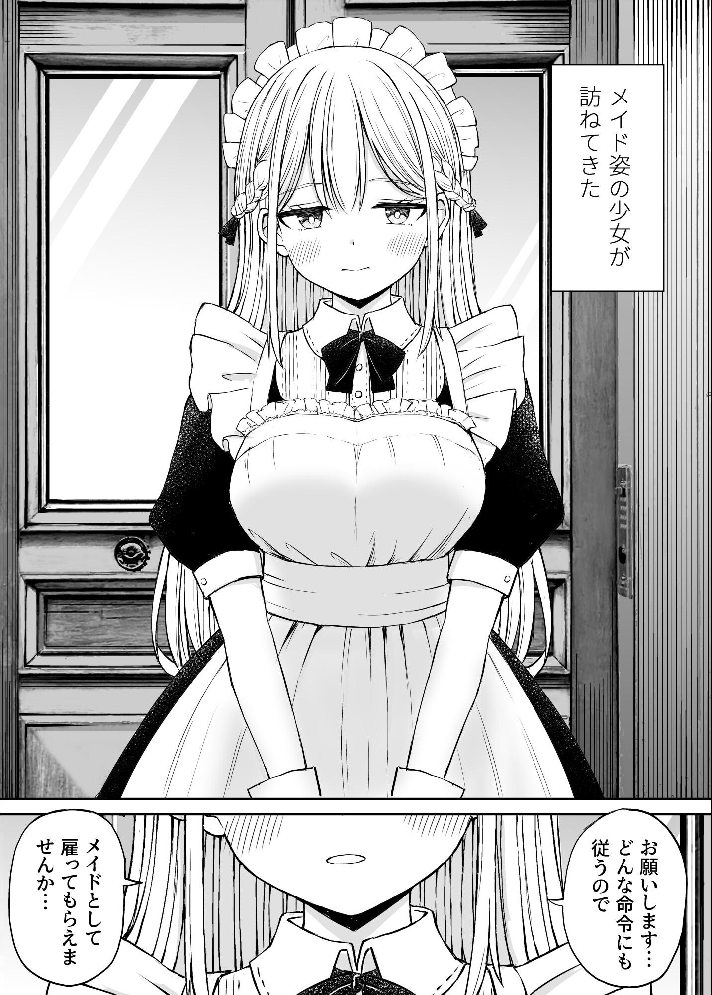 祖父の死後、山奥にある古びた洋館を相続した俺は一人孤独な生活を送っていた。 そんなある日、「神月彩乃」という少女が洋館を訪ねてくる。 彼女の母親がかつてこの洋館でメイドとして働いており、母の死後行く場所が無いため「どんな命令にも従うので、雇ってほしい」と懇願する。 追い出そうとするが、祖父の手紙も持っており俺はしぶしぶ彼女を受け入れた。 だが相続のゴタゴタで人間不信に陥っていた俺はわざと無茶な命令を出したり冷たい態度をとる。 しかし、彼女はどんな厳しい命令にも従い、メイドとして健気に仕事をこなす。 そんな中、過労と睡眠不足で倒れた俺。 今まで冷たく接していたにも関わらず、ずっと寄り添っていてくれた彼女に対し もっと彼女の柔らかさ、温もりに触れたいと思ってしまう…。 46ページ