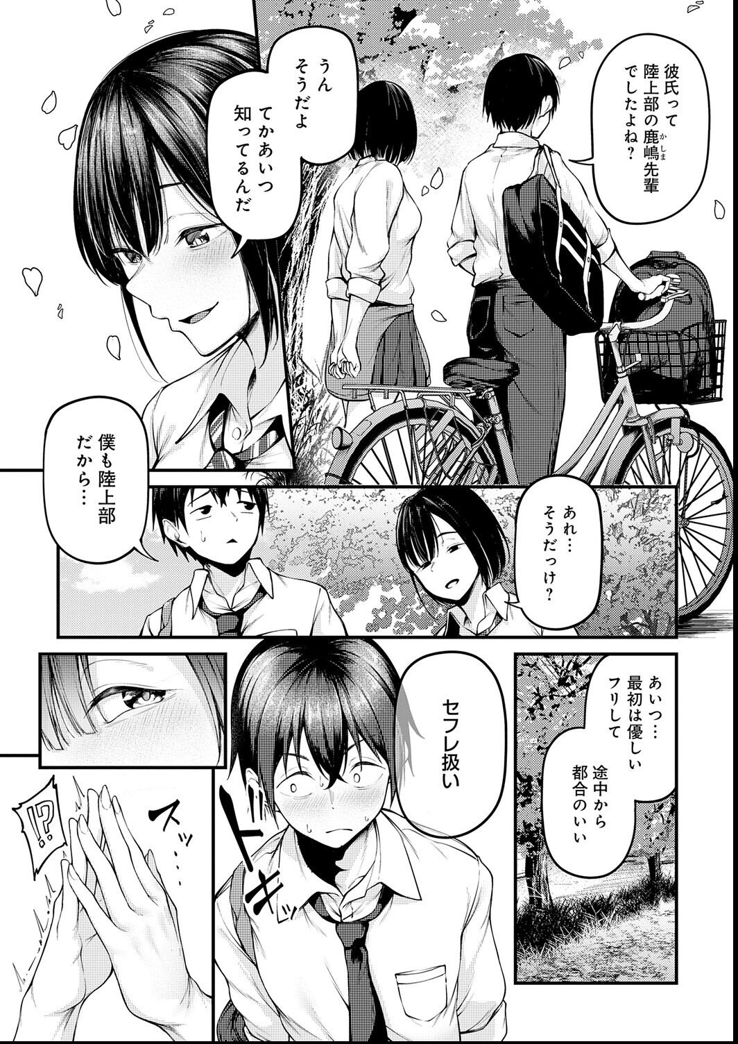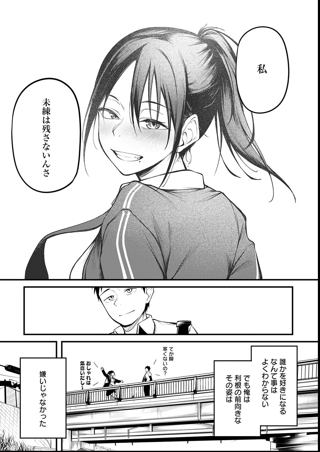いつでも好きって言えたのに、 最鬱級BSS作家・佐波缶が贈る、青春の切なさが溢れる初作品集がついに登場!!! 幼馴染・利根の情事を目撃したことで自覚した、あまりに遅すぎた恋心── そして2人の5年ぶりの再会を描いた代表作の他、ヤリマン問題児からの擬似NTRプレイで心も体も屈服させられる悦楽、思い出の場所が上書きされる幼馴染と誰かの密会など……。 好きな女を奪われた痛みでしか得られない、最果ての快感をアナタに。 デジタル特装版には、12ページ追加特別作品収録♪ 【収録作品】 『君が思い出になるまで』 クラスの人気者・利根と俺は幼馴染だ。 彼女に対して抱く気持ちが「好き」なのかどうかもわからないまま、俺は変わらない日常を過ごしていた。 そんなある日、チャラい転校生・玉村が現れ──利根は、彼と付き合い始めた。 俺にとって利根はただの幼馴染。だから気にしないでいようと思っていた。 放課後の教室で、利根が玉村にフェラする姿を見かけるまでは…… 『君と思い出になるまで』 卒業後も俺の心には、学生時代の想い人・利根の存在がわだかまっていた。 今日は同窓会。五年ぶりの再会。 成長した利根と喫煙所で顔を合わせ、会話は自然と学生時代へと遡っていく。 整理のつかない自分の気持ちを思わず吐露すると、利根は、 「抜け出しちゃおっか」 そう言って、俺をホテルへ連れ出し── 『失恋の残香』 僕はずっと、吾妻さんに片想いをしてきた。 けれど彼女は、陸上部のヤリチン・鹿嶋先輩と付き合っていて、僕にはアプローチする隙すらなかった。 そんなある日、彼女のほうから僕に声をかけてきた。 ──先輩と別れ、新しい男を試したいのだ、と。 そうして誘われるままに、僕たちは彼女の家で体を重ねることになった。 けれど…… 『ひみつきち』 幼馴染の涼夏と俺はかつて、二人だけの秘密基地を作るほどの仲良しだった。 しかし、ボーイッシュで男友達のような涼夏を「女」として意識してしまったことをきっかけに、俺は涼夏と距離を取るようになった。 思い出に耽って久しぶりに秘密基地を訪れると…… 涼夏はヤリチンに抱かれ、俺には見せたことのないメスの顔を晒していた!! 『言えずの初恋 』 友達の姉貴であり、俺の初恋の人でもあるあっちゃんの様子がおかしい。 以前あっちゃんに告白されたにも関わらず「好きな子がいる」と嘘をついてしまった俺は、今度こそあっちゃんに想いを告げようと誓っていたのだが、友達から「姉貴に彼氏ができたらしい」と聞いてしまう…。 『彼女のいた図書室』 冴えない主人公・慎二が唯一楽しみにしていること、それは地味な図書委員・渡瀬みどりと図書室で過ごすことだ。 退屈な日常を過ごす俺にとって彼女との時間は大切なものだった。 そんな彼女が、最近図書室に来ない。 残念に思いつつ帰宅すると、大嫌いな兄貴の部屋からみどりの声が聴こえて──!? 『失恋の残香〜After Story〜』☆デジタル特装版限定収録作品 「最近…勃ちが悪くない?」 吾妻さんと無事付き合えた(?)僕だったが、更なる試練が待ち受けていた──!?