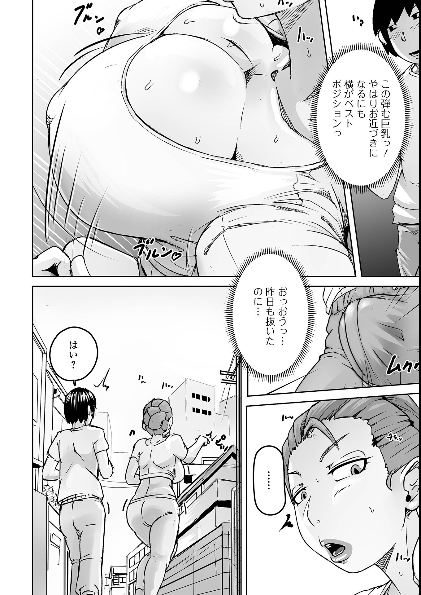 ジョギング奥さん、揺れる爆乳と張りのあるプリケツがタマランです。 ジョギング中に知り合った男子を行き止まりに誘い込み、ジャージ下していきなり勃起を咥え込み、爆乳で挟み込みます! 運動すると血流良くなって、欲情度も増すのでしょうか。 突然スゥィッチ入ったのか、奥さん責めと求めは厳しいのです。 人目の付かない路上の物陰で始まる立位と後背位でのキツイ情交! 奥さんのデカ尻抱え込んでの必死ご奉仕で、ご満足いただけるでしょうか…!? ※この作品は「Web配信月刊隣の気になる奥さん vol.108」に収録されている作品の単話配信です。