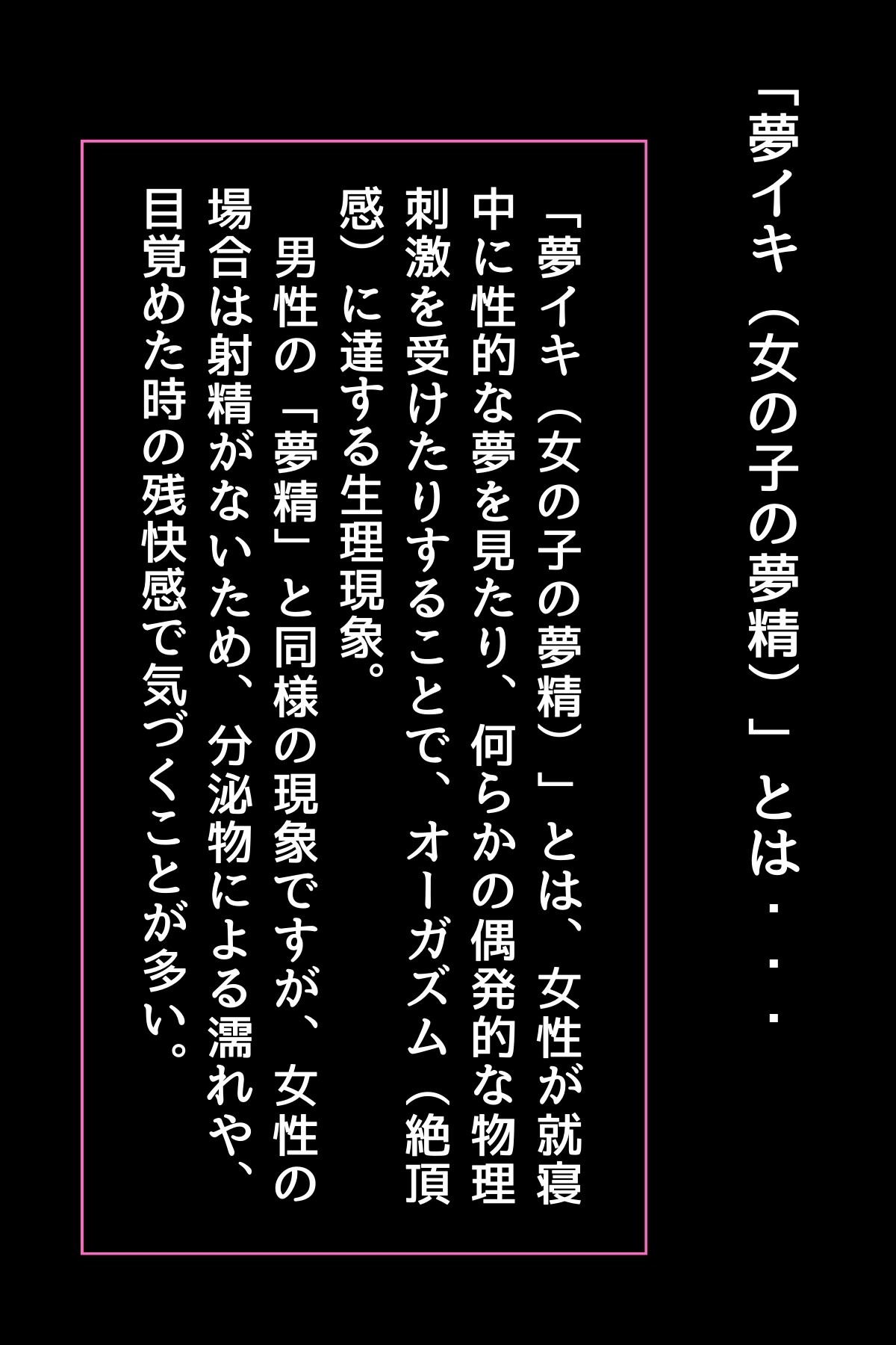 私は最近、「夢イキ」にハマってしまっている。 夢イキとは、睡●中に無意識のうちに性的興奮が高まり、絶頂に達してしまう現象のことだ。 男性の夢精に似ているけど、私の場合、夢の中で誰かに激しくされるような感覚が現実以上に鮮烈で、体が勝手にビクビクと痙攣する。 起きた瞬間、下着がぐっしょり濡れて、太ももに愛液が滴り落ちるあの余韻……。 普通のセックスでは味わえない、脳が溶けそうなほどの快感。 一度経験したら、もう抜け出せない。 きっかけは、数ヶ月前の昼寝だった。 夫との夜の営みがマンネリ&減少して、欲求不満が溜まっていた頃―― ※実在の人物、団体などとは一切関係ありません ※ストーリー&イラストで演出しております ※AIで生成した画像を含みます ※同名タイトルのボーナストラック版となりますので重複購入にご注意ください