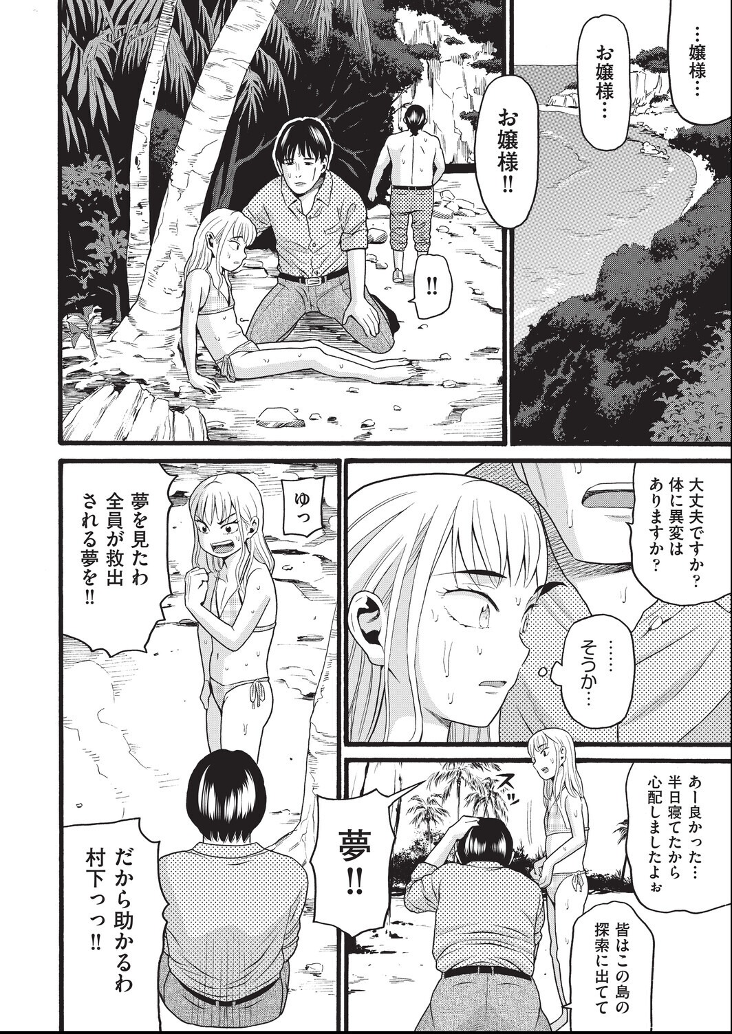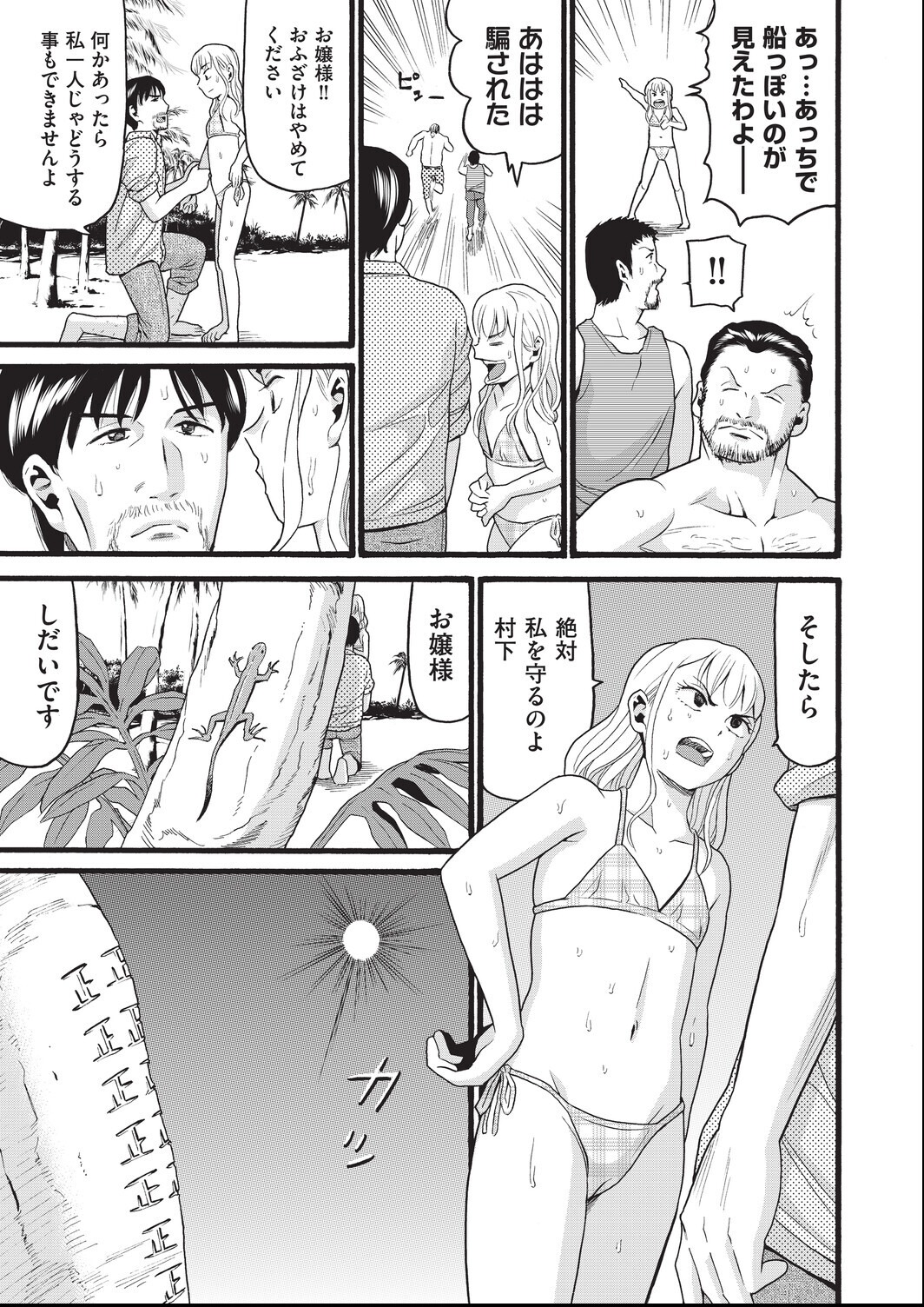 わがまま令嬢が無人島で従者たちに逆転される展開、この倒錯感がマジでヤバい!3P・4Pで野外露出、日焼け娘の処女まで頂くとか全部乗せすぎ!ハッチ先生の小柄キャラが動き回るコマ割りが最高に楽しい!