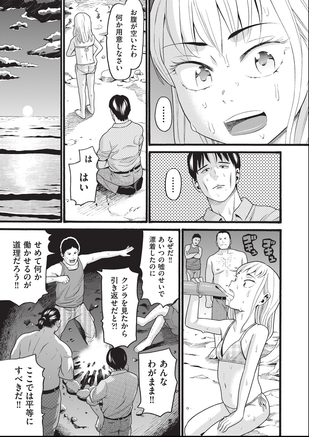 無人島という隔絶された環境を使って男の本能解放を描く設定はシンプルでわかりやすいんだよね。ハッチ先生の日焼けキャラのエロさが出ていて、3P・4Pと処女破りが詰め込まれている。330円でこの内容は悪くない。