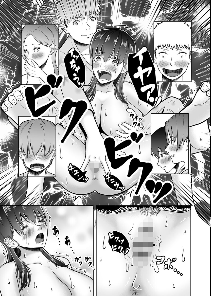 修学旅行の日、陰キャの日浦はクラスメイトの江上から、ある誘いを持ちかけられた。それは、エッチな罰ゲーム付きのトランプ大会を女子部屋で行うというもの。そこには日浦が密かに想いを寄せる文香もいる…!彼女をアシストするべく、イベントに参加する日浦だが、それも虚しく負けてしまう文香。罰ゲームは、みんなの前でがっつりセックスを行うというもの!文香は全裸に剥かれ、おっぱいからお尻のシワまでクラスメイトに見られてしまう。相手になる男子は経験豊富な陽キャで、恥ずかしがる文香を濃厚な前戯で快楽に導いてゆく。それを見て興奮したクラスメイト達は乱交に発展…!興奮しきった童貞男子達の硬くイキったモノで突きまくられ、文香は何度も絶頂を繰り返すのだった…
