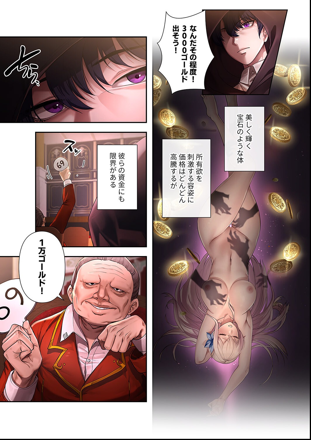 ゲーム転生という設定を単なる舞台装置にせず、カーラの悪役転生という伏線として活用している点は評価に値する。フルカラーの画力は高水準であり、コマ割りの緩急も効果的と言えよう。ご奉仕シーンの演出も品があり、ファンタジーエロ漫画として高い水準にある。