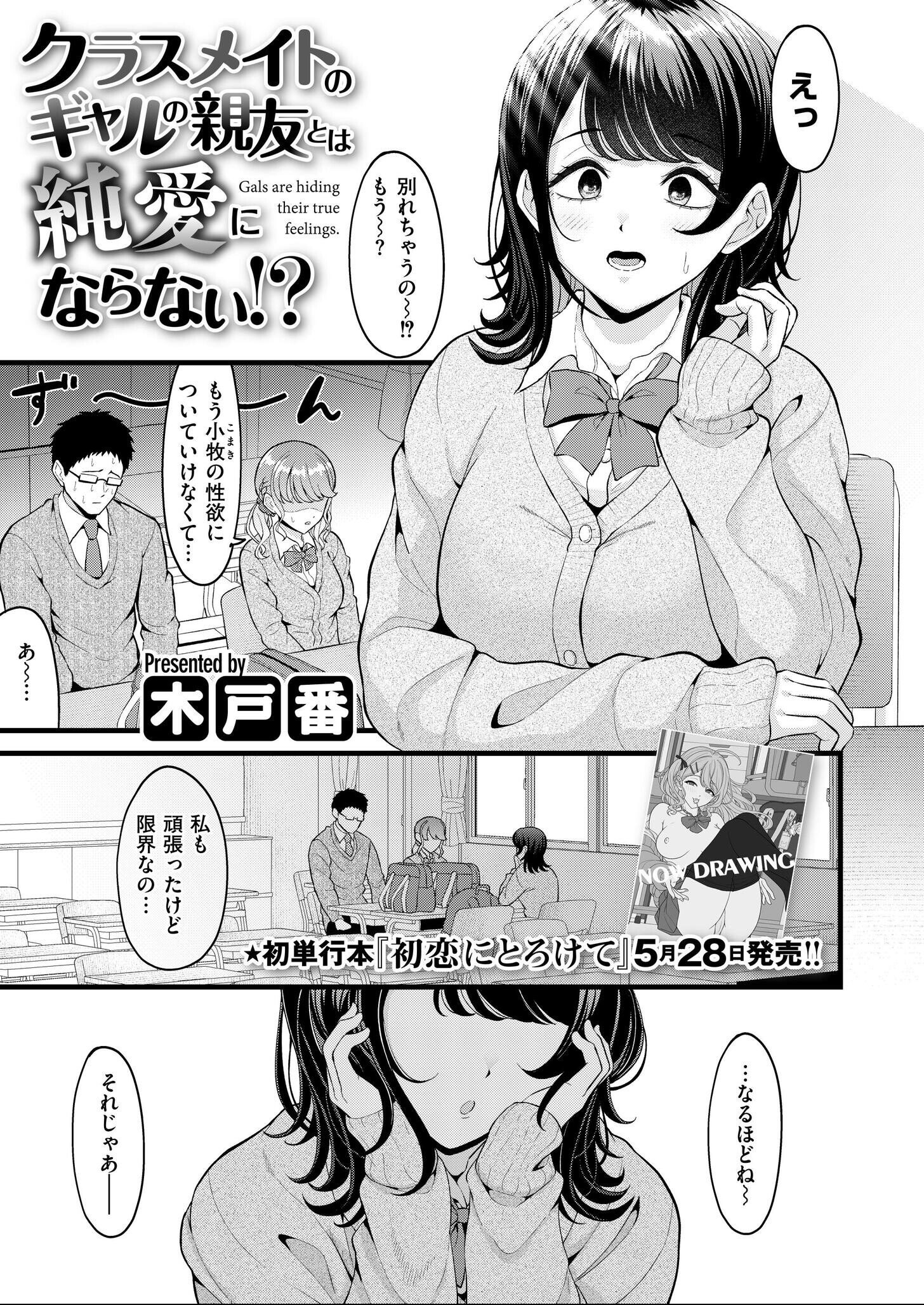 初単行本『初恋にとろけて』5/28発売!!! 桃井の手助けで付き合うことになった小牧と三笠が別れの危機!? 原因は性欲が強すぎる小牧についていけないことがだった! 相談を受けた桃井は再び3Pで性欲の解消を行うが…? 今度は教室で、クラスメイトのギャル2人とヤリまくる! 初単行本、発売間近の木戸番先生最新作が登場! コミックカイエンVOL.32掲載作品です。