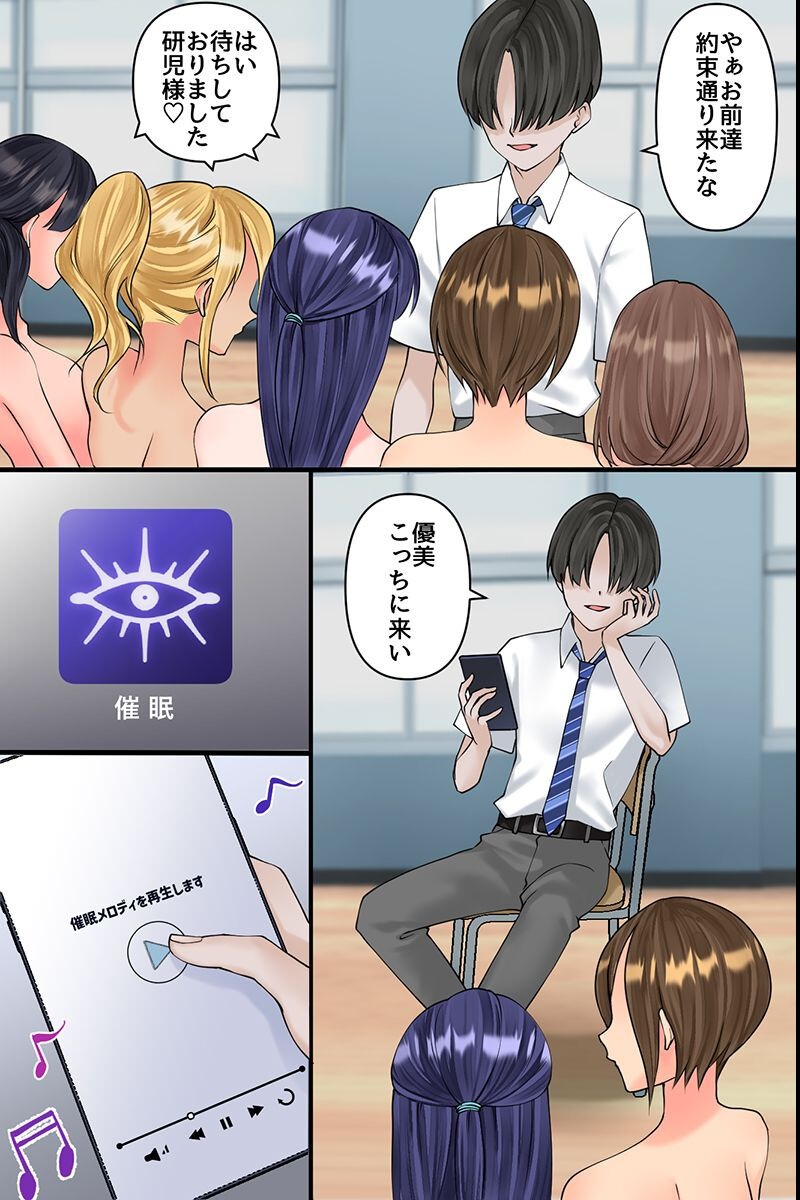 いじめられ体質でぼっちな主人公。そんな主人公の前に現れた三人の先輩女子。大和撫子のような清楚な見た目の、古川優美。金髪サイドテールギャル、岩崎紗衣。ショートヘアーで活発女子、浅野実乃里。学園の優等生である彼女たちは、初めは主人公にとても優しく接してくれた。だがすぐに本性を現し、日々のストレス発散先として主人公をいじめるようになった。毎日、精神的にも肉体的にも追い詰められていた主人公はあるアプリを見つける。主人公はそのアプリを見た瞬間、運命のようなものを感じた。「じゃ、先輩。服を全部脱いでください」「はい、服を…脱ぎます…」「しゃがんでコレをしゃぶれ」「はい、しゃぶります…」アプリの力でいじめ先輩たちが面白いほど素直に言う事を聞いてくれる。「お願いこれまでの事は謝るから……」涙ながらに謝罪する優美に主人公は容赦なく彼女の処女膜をブチ破る。復讐を誓った女どもをアプリの力を使って快楽の底に叩き堕としてヤる!・いじめられっ子主人公が操り音楽を流すアプリを手に入れる・迷わずいじめ先輩女子三人組にアプリを使用し、自分専用穴に仕立て上げる事にした・放課後の空き教室にグループのリーダー優等生、優美を呼び出す・優美は全裸で媚びるように奉仕する友人、紗衣と実乃里の姿に言葉を失う・アプリの説明をするも信じない優美を拘束してアプリのメロディを聞かせる・美人優等生、優美が涙を浮かべながらフ○ラ奉仕・美人優等生に口内射精&ごっくん・机の上で足を広げてM字開脚・問答無用で処女貫通式開始・勝手にイった罰として尻突き出させてくぱぁおねだり・三人のケツ並べてバックでガン突きして大量生出し。アプリでいやらしい行為をさせられまくり、心だけは拒む先輩だったが快楽に流されてただのオ○ホに堕ちていく。フルカラーコミック