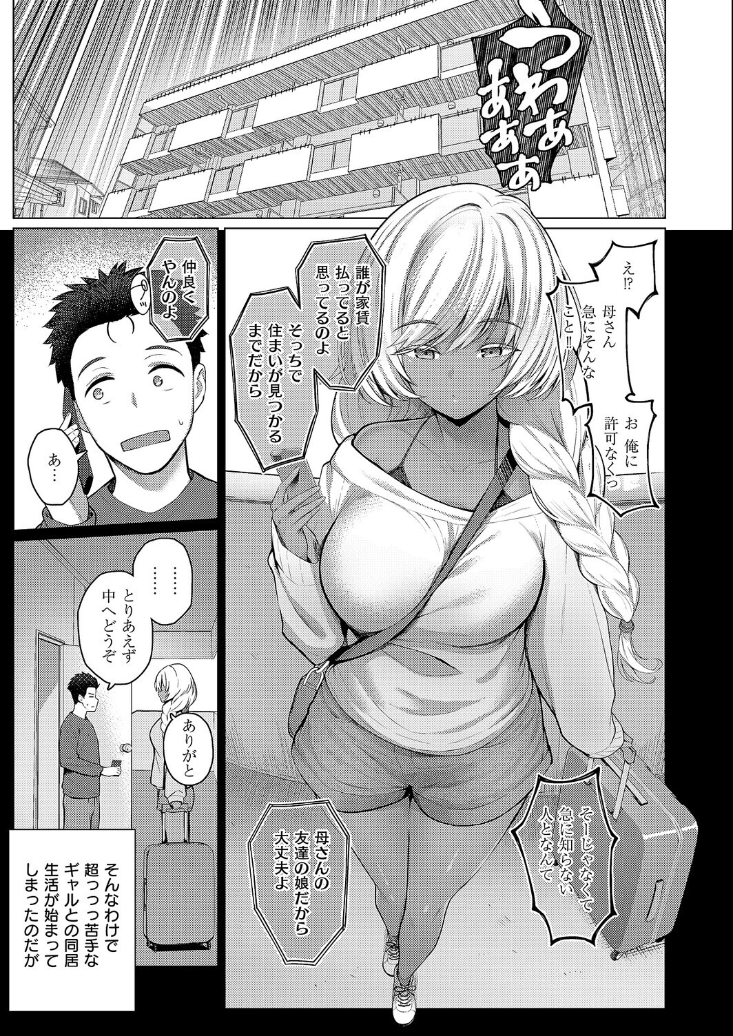 いじめられてギャルが嫌いになったジュン。しかしある日突然、親の都合でギャルと同居することに―!!? 褐色ギャル・月彩(るあ)さんはめちゃくちゃマイペースで、人目を気にせず着替えるし、下着が脱ぎっぱなしなのも当たり前。 挙げ句の果てにはお風呂にまで一緒に入ってくる始末! 初めて女の子の裸を見たジュンは居ても立っても居られず、ギャルもののAVでヌいておこうと思ったのだが、それを月彩さんに見られてしまい―!? あたしがヌくの、手伝ってあげようか? ふわふわおっぱいクリエイター・栗原ケンシロウ先生が贈る、苦手克服のためのSEXレッスン♪