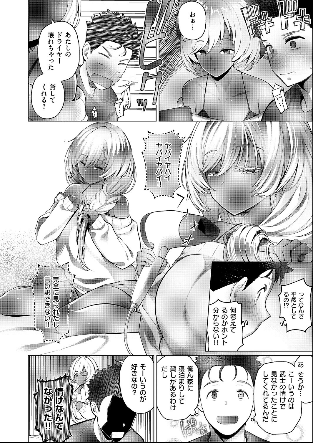 マジでヤバい!褐色ギャルの月彩さんがとにかくエロくてかわいい!無防備な着替えから始まって、お風呂一緒に入ってくるくだりで心拍数爆上がり!栗原ケンシロウ先生の画力がしっかりギャルの魅力を引き出してて、コマ割りのテンポも気持ちいい!