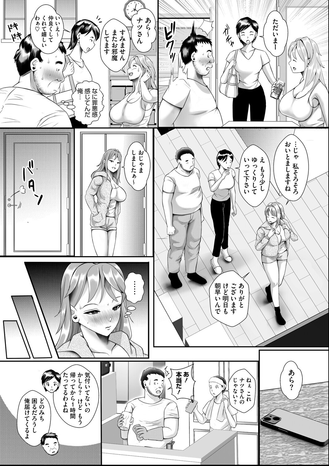 仕事が忙しい妻を持つ夫は、主夫として家事と子育てにいそしんでいる。たまの楽しみといえば、不慣れな自分になにかと世話を焼いてくれる同じ園に通っているママさんとの宅飲み。それにしてもいつもラフすぎる恰好で、目のやり場には困ってしまう。ある日、宅飲みで彼女が忘れたスマホをすぐ近くの彼女の家まで届けると、酔っ払っているのか抱き着いて濃厚なキスをされてしまい?