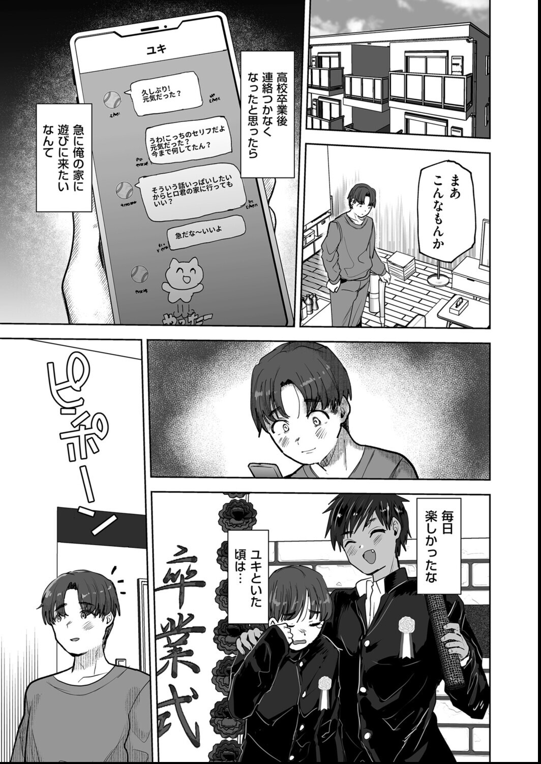 俺はひろや。25歳の童貞フリーター。 今日は●校の男友達であるユキが 家に遊びに来る日だ。 ユキのやつ、卒業後音沙汰がなくなったと思ったら 急に連絡を寄越してくるなんて。 それにしても、ユキと一緒にいたあの頃は、 毎日楽しかったな……。 そんな感慨に耽っていると、チャイムが鳴った。 どうやらユキが来たらしい。 ユキを出迎えるために玄関のドアを開ける。 すると……。 俺好みの黒ギャルが待ち構えているではないか! 誰……? もしかして……ユキ!?