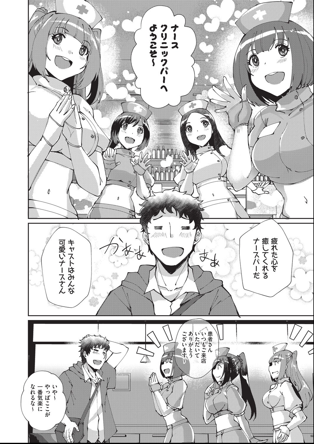 疲れた心を癒してくれる「ナースクリニックバー」に通う直人。久しぶりに会ったキャストのセリカちゃんに密着接客されチ●ポは元気!他のキャストがいなくなった隙にセリカのお口にぱっくん。射精寸前に個室へ誘導されて内緒の特別サービス生挿入セックス開始!!