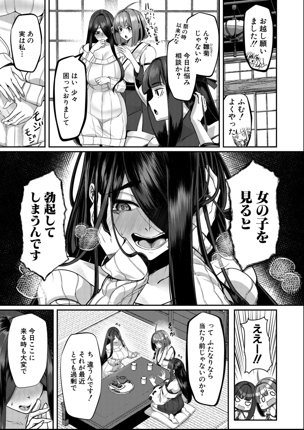 全国からふたなり娘達が集う「マラガミ神社」。 この神社で巫女として働く姉妹「真冬」「小春」は今日も悩めるふたなり娘の悩みを解決する。 本日の悩めるふたなり娘「雛菊」は妄想のし過ぎで女体を見るとドエロい欲求を抑えられなくなるらしくて……! 最新探訪本作品の番外編!