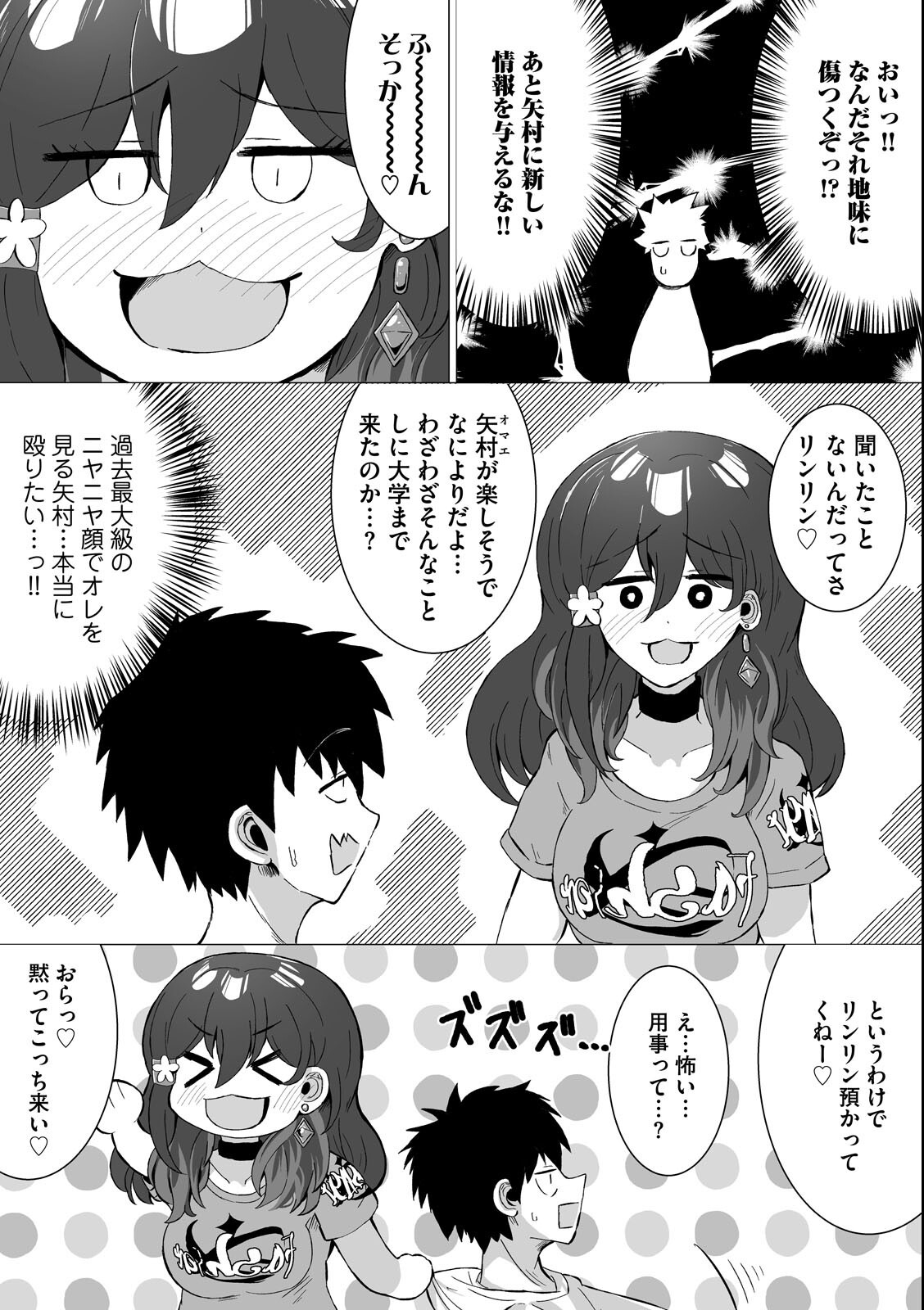 恋愛弱者の大学生、林田凛吾(リンリン)の素人童貞をバカにしてくるギャル、矢村海月姫(やむらみつき)。 ●校時代からずっとダル絡みをされていた凛吾だったが、ふとしたきっかけから矢村と身体を重ねることになり、見事撃退に成功…… ところが「リンリンのせいだよ」と矢村のエッチな付きまといが激化! 迫られヤりまくってちょっと矢村が好きになりかけている俺VSメロメロにされて「交際経験無し男」に嵌まってしまったギャル。 二人の駆け引きの行方はある意味純愛、ある意味青春!?