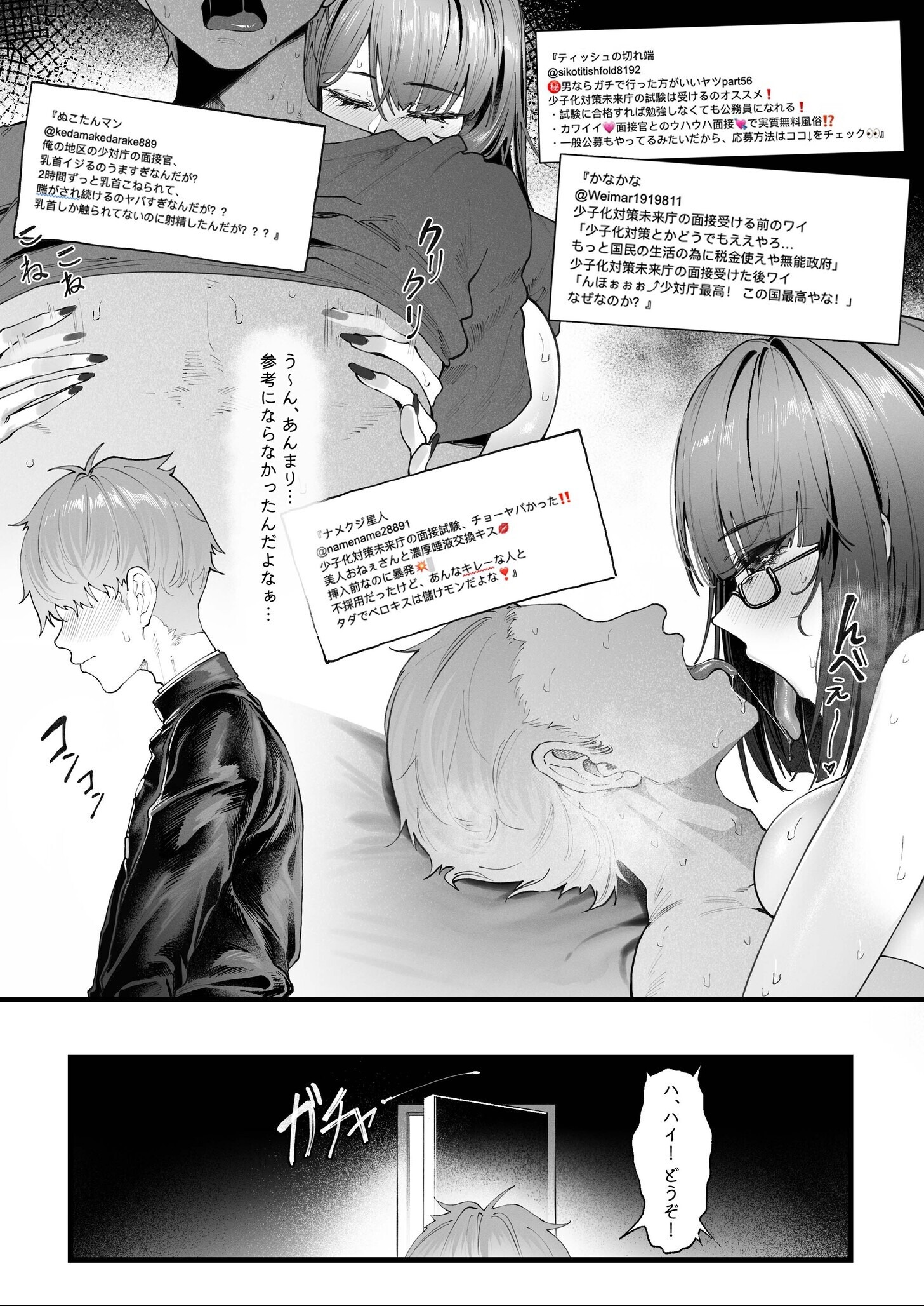 「お射精ぴゅっぴゅ、しろ(してください)」 小野田 光(おのだ みつる) 身長が伸びないことだけが悩みの平凡な学生生活を送る18歳 そんな彼に届いた手紙、それは少子化対策未来庁からの『おしべ』候補者面接案内だった…… 面接試験と称して行われるカリスマ系Lカップ、おっとり系Mカップ、タイプの違う2人の美人職員によるドスケベ搾精プレイ! 「私を満足させらない雑魚ちんぽなら試験失格よ!」 学生相手にも一切容赦しない、ムチムチ巨乳面接官達! 連続発射お搾り試験で金玉はもうカラカラ?? でも高圧的な彼女達の本性は…… ※本作品は同人誌です。重複購入にご注意ください。
