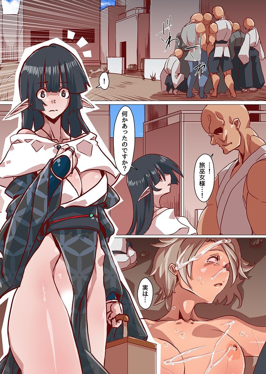 高名な旅巫女アルマは、立ち寄った村で目を覆う惨状を目撃した。精液まみれで魂を抜かれた村娘たちが地面に横たわり、秘部から黒い刀の鞘が突き出し、白濁の水たまりを作っている。神に仕える身として許せないと、アルマは単身、鬼蜘蛛の討伐に向かった。だが洞窟奥で甘く淫靡な香りを吸い込み、意識が溶けるように落ちる。 目覚めると全裸で蜘蛛の巣に吊るされ、鬼蜘蛛の触手が乳首を抓み、濡れた肉穴をぬるぬると抉っていた。疼く秘部からは黒い刀の鞘が生え、柄がクリ○リスを押し上げるように突き出している。わずかに擦られるだけで腰が勝手に跳ね、びちゃびちゃと潮を吹き散らす。「この刀が抜けたとき、お前は一生忘れられない絶頂を味わう」鬼蜘蛛の言葉と同時に刀が引き抜かれ、脳が溶けるほどの快楽に意識が飛んだ。魂を失った肉体は人形と化し、刀を戻すと意識が戻る。両手を拘束されたまま後背位で極太チ○コをねじ込まれ、刀を抜きかけられるたびに絶頂は寸前で止められる。何十回、何百回と無慈悲な寸止めを繰り返され、巫女としての尊厳は粉々に砕かれていく。ついにアルマは全身を震わせ、涙とよだれを垂らしながら泣き叫び、「イかせてくださいぃぃっ!!」と無様に絶頂を懇願するのだった――。・精液まみれ&ク○から刀鞘が生えた奇妙な村娘たち・純潔巫女が単身討伐に向かうもあっさり捕獲される・全裸で吊るされ拘束され全身に触手が這い回り理性崩壊寸前・魂が刀化し、巫女のク○からも刀鞘が突き出る異常事態・純潔を後背位で破壊され&連続寸止め地獄・触手と巨根による極限寸止め地獄が無慈悲に繰り返される・イかせてくださいぃぃと無様な自己否定全開の懇願 ・連続絶頂生出しで腹がパンパンになるまで注ぎ込まれ続ける。フルカラーコミック