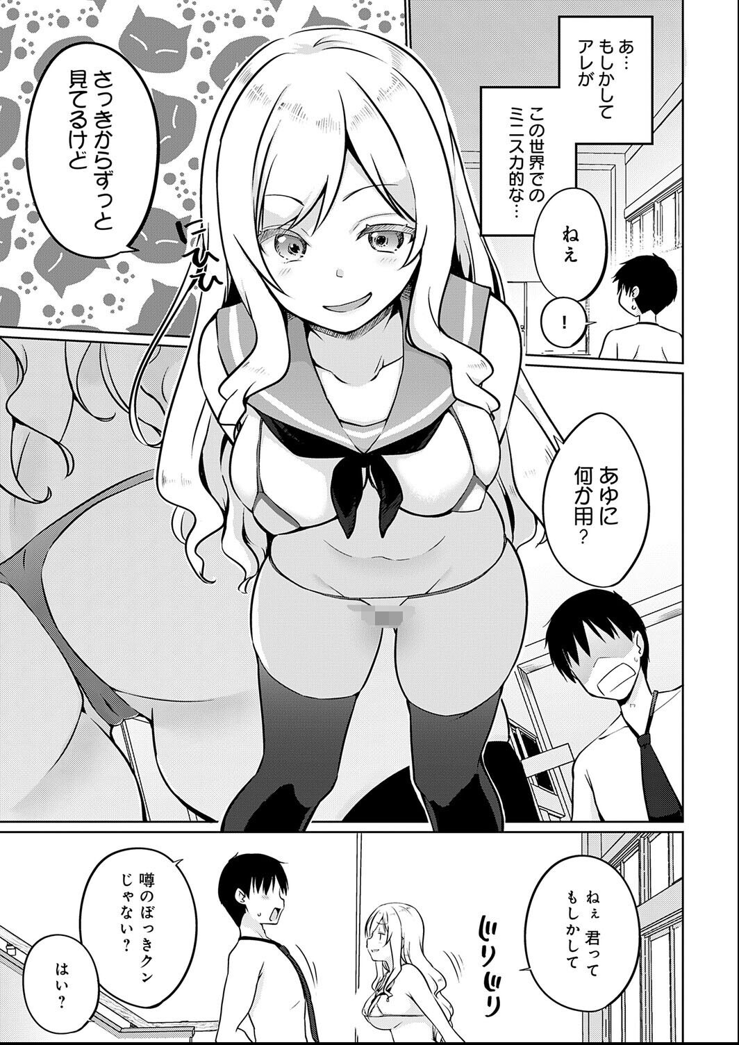 気づいたら俺は、並行世界の自分と入れ替わっていた! ほとんど同じ世界、だけど決定的な違いが── この世界線では、衣服が全然発達しなかった!! 学校の制服ですら、まるで水着みたいな布面積! しかも、この世界では、チ○ポを勃起させたら、その人が責任を持って処理するのが常識らしい!! これまではそんなトンデモない常識を楽しんでいたけど、水着を見慣れてあんまりムラムラしなくなってきた…… そんなとき、目の前に現れたのは、水着が食い込みすぎなギャル! さすがに刺激が強すぎて、勃起してしまい──!! 「まぁとりあえずぅ 勃起させちゃった責任取らないとね♪」 もちもちスケベ女子の帝王・かいづか先生が贈る、夢の常識改変世界シリーズ第3弾! マイクロビキニギャルと学校で処女喪失ハードFUCK☆