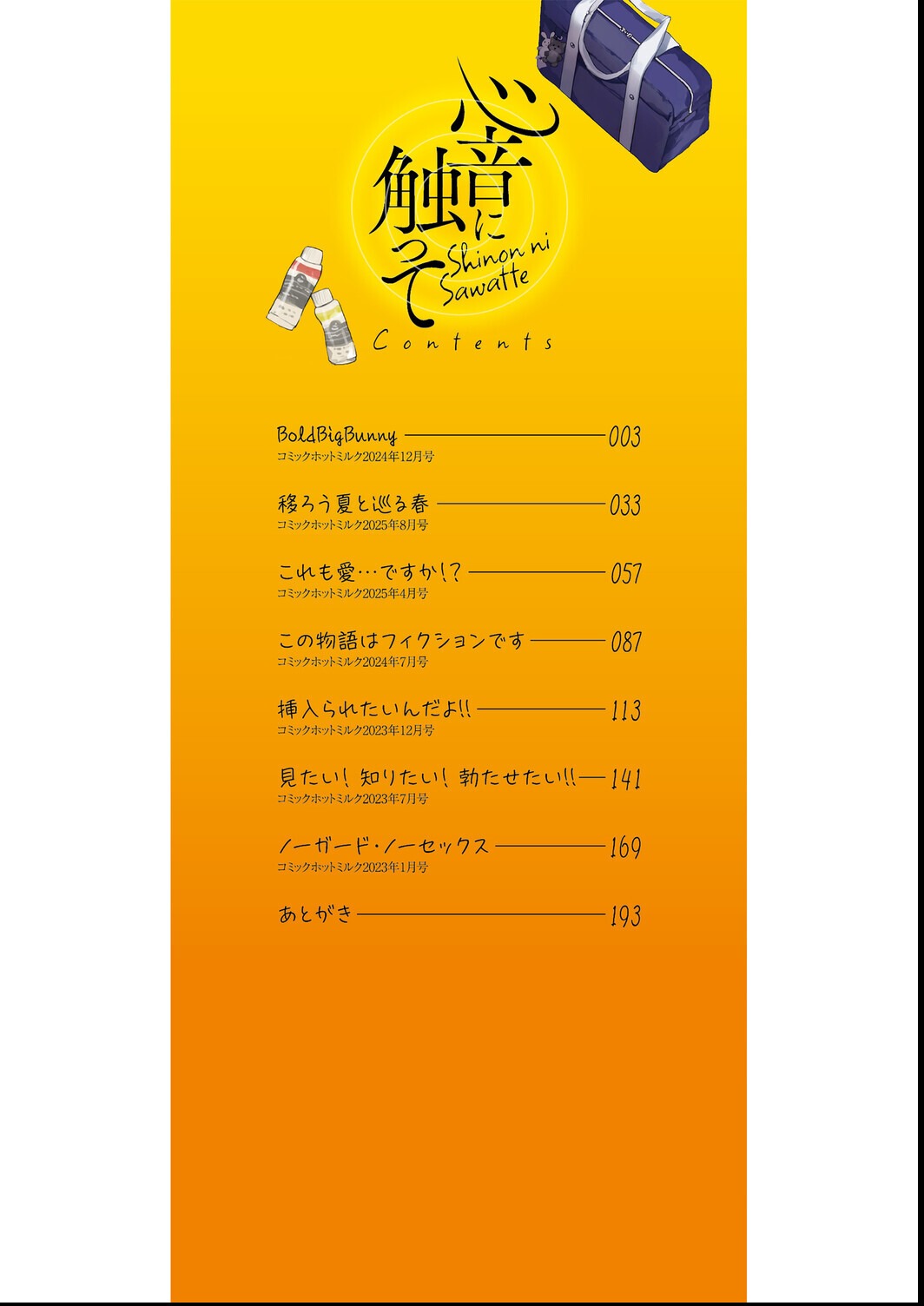 うぶな子宮に、たくさん教えてね♪ 幼馴染みの兎衣は、背は高いがこどもっぽさが抜けず、いつも距離が近い。 こちらの気も知らず、文化祭で着る予定のバニーガール姿を無邪気に見せびらかしてきて……もう我慢できない! 両片想いな幼馴染みとの初エッチ、 オタクに優しくない強気なギャルとドタバタエッチ、 いつも喧嘩ばっかりなアイツとのアオハルエッチ♪ トキメキは子宮で感じるもの。性に目覚めた一途な女の子は、走り出したら止められない! 思いっきりヤりたいことをヤりまくる、加筆修正を含めた胸キュン待ったナシの短編7作品を収録。 大胆&キュートなヒロインといちゃらぶSEX♪ 心も体も元気にさせちゃう沙ノ樹初単行本! <収録作K品> BoldBigBunny 移ろう夏と巡る春 これも愛…ですか!? この物語はフィクションです 挿入れられたいんだよ!! 見たい!知りたい!勃たせたい!! ノーガードノーセックス ※収録作品のうち「見たい!知りたい!勃たせたい!!/挿入られたいんだよ!!/ノーガード・ノーセックス/この物語はフィクションです」は配信コンテンツ「No way girl」にも収録されています。ご確認の上ご購入をお願いいたします。