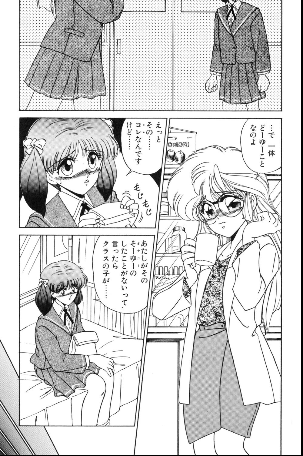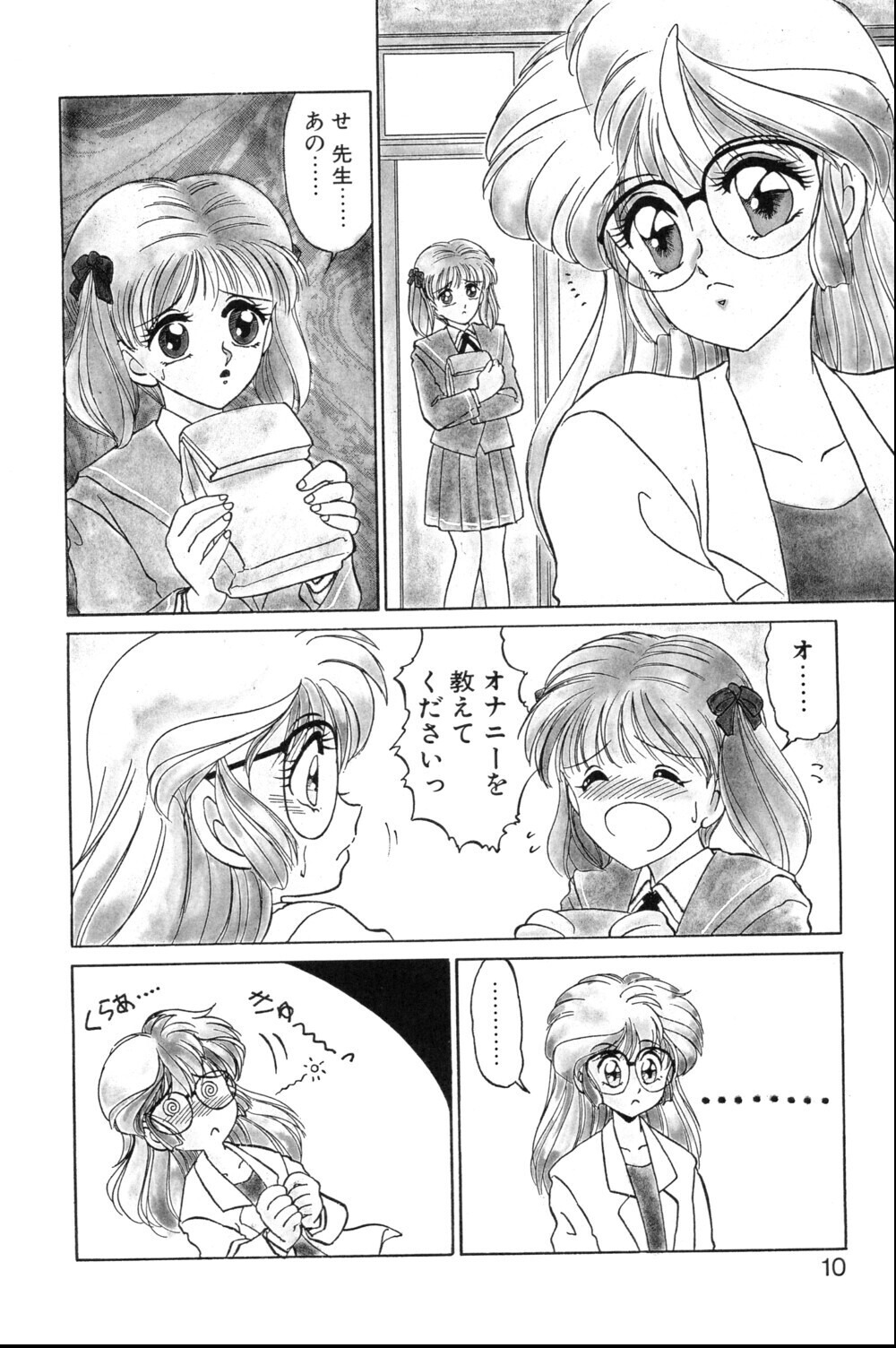 処女という設定を女教師に付与することで、性の指導者という立場と個人の経験値のギャップが生む可笑しみを本作は巧みに活用している。みやもと留美の線は繊細で、水城先生の羞恥心の描写に説得力がある。めがねというアイコンが先生キャラの真面目さと官能性を同時に表現する役割を果たしている点も評価できる。