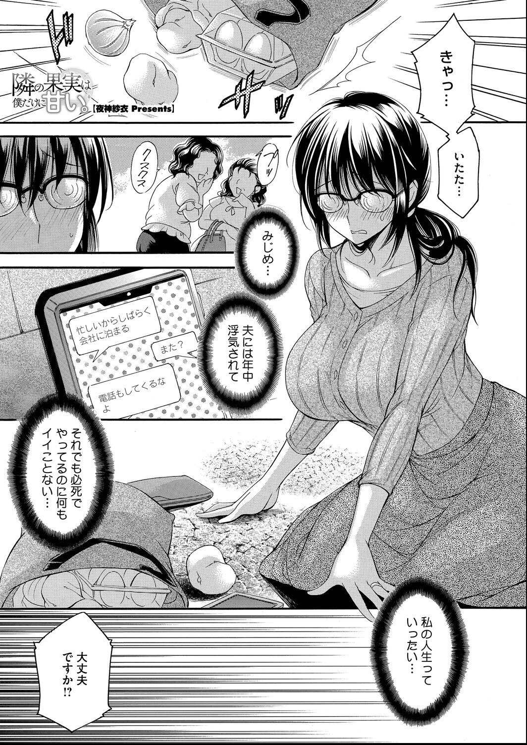 読むだけで天国 快楽 淫乱 奉仕 徹底的人妻専門漫画 ★COVER ILLUST 白野じん ★ORIGINAL COMIC LINEUP [ママがセーラーに着替えたら…]月野定規>>お母さんが学園祭でアオハルSEX!? [経産処女 4]ここのき奈緒>>私が性獣になりはてたのは憎いはずの男のせいなのか [ママと水着デート]南田U助>>彼女のお母さんとおうちで水着H [オナ妻先輩はトイレでイク]歌麿>>男子トイレでオナニーをする破廉恥人妻OL [デリバティブ・ワイフ 前編>>ビッチ☆ゴイゴスター>>オークションで体を売っているスキモノ妻 [同じ穴のムジナ 前編]海野りょう>>純愛の名のもとに…歪んだ愛をつなぎとめるのはSEX [マゾメスママ 第六話]黒岩瑪瑙>>息子のお尻を調教する幸せ [隣の果実は僕にだけ甘い。]夜神沙衣>>あなたのためになんでもしてあげたい [なかよしママ友っ]せくしぃも>>専業主夫のママ友と宅飲み、からの…? [夏・犯熟 第14話]木静謙二>>日常と悪夢が目まぐるしく入れ替わる ★COLOR ILLUST COVERGIRL 調教牧場 不貞フィットネス妻・汐里 膣奥締まる不倫Lesson/白野じん