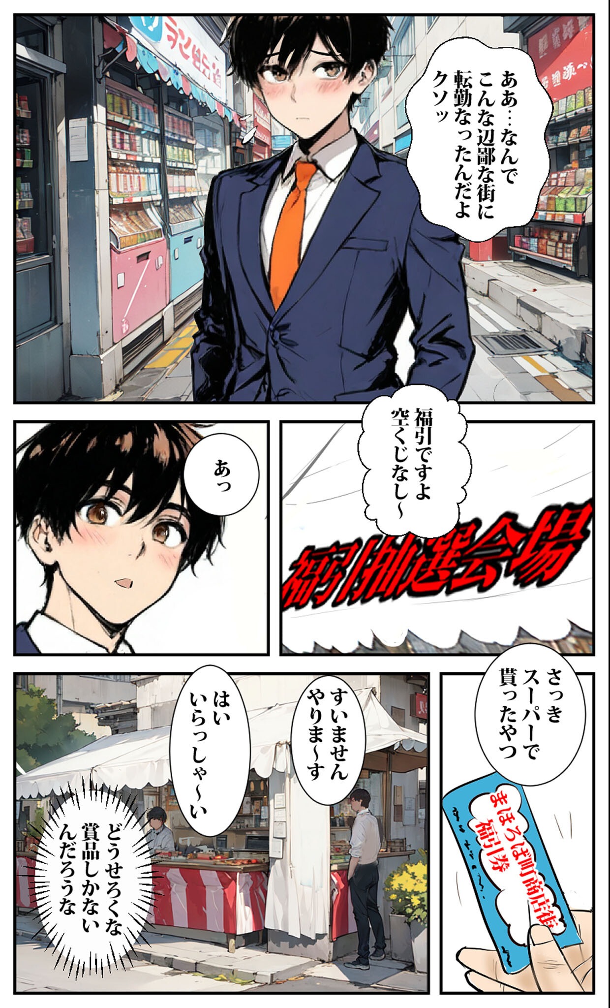 これ考えた人マジ天才!商店街の福引きで人妻が当たるってシチュエーションがバカすぎて最高!でも読み進めたら普通に感情移入してる自分がいてヤバい!人妻さんのキャラが立ってて、エロシーンのコマ割りも見やすくて全部最高!地方転勤の孤独感もリアルだった!